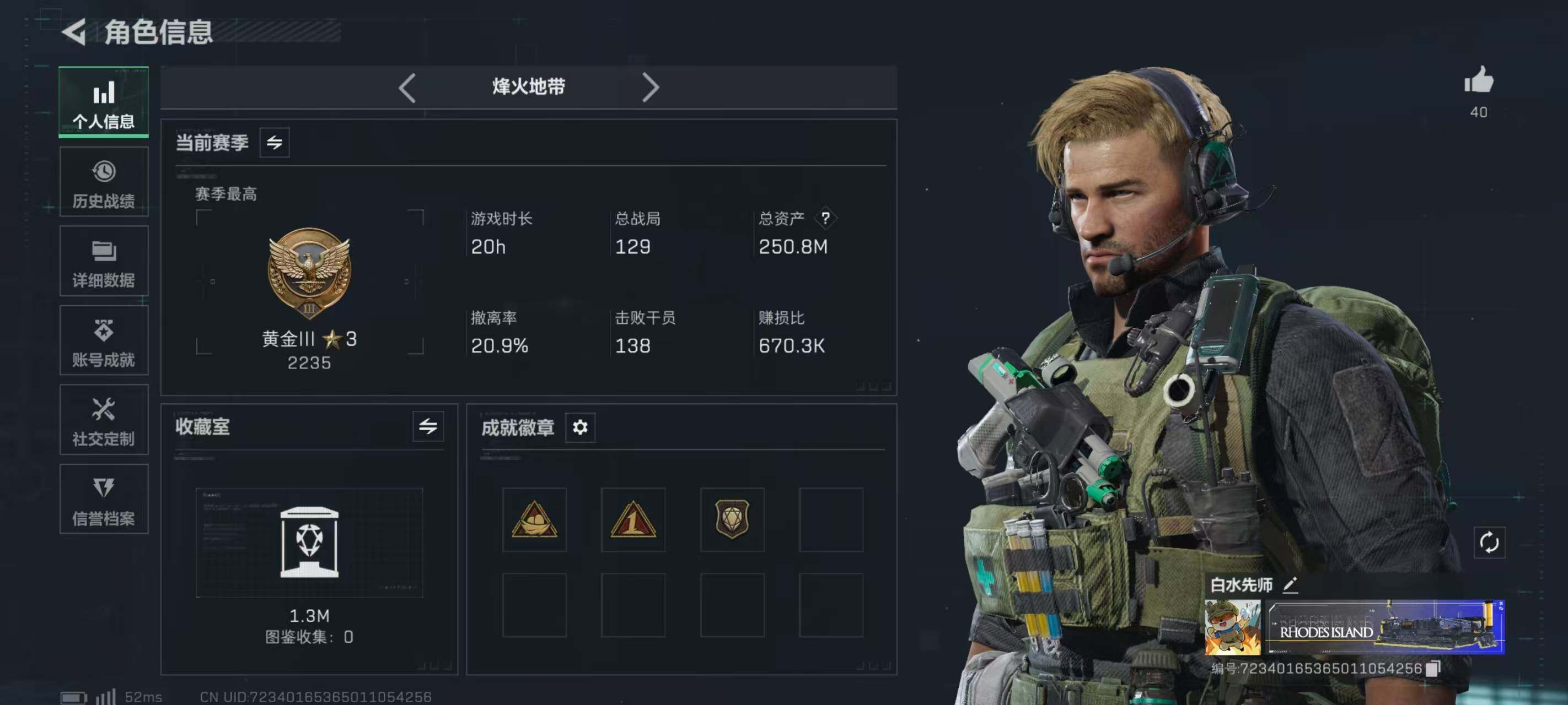 LJ4206总资产250.8M哈弗币138M无骇爪水墨云图,露娜黑天际线,蜂医送葬人无题密令,红狼电锯惊魂无无AW子弹0发三角币197仓库LV.7基础安全箱靶场LV.2训练中心LV.4无,骇爪-水墨云图,露娜-黑·天际线,蜂医-送葬人·无题密令,红狼-电锯惊魂