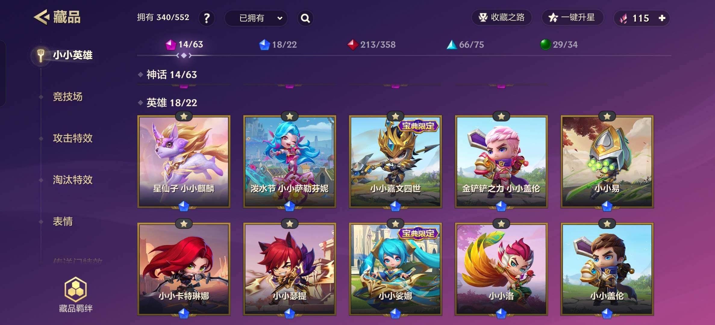 【神话小小英雄】:至臻 星辰鳞珑,剪纸仙灵 小小格温,神凰行者 小小萨勒芬妮,隐龙之子 小小伊泽瑞尔,香水宝石 小小迦娜,电玩女神 小小凯特琳,龙腾虎跃 小小瑟提,神龙尊者 玉境灵龙 小小卡莎,神王 小小盖伦,神王 小小德莱厄斯,玉剑传说 小小艾瑞莉娅,未来战士 小小伊泽瑞尔,战斗学院 小小杰斯,神龙尊者 小