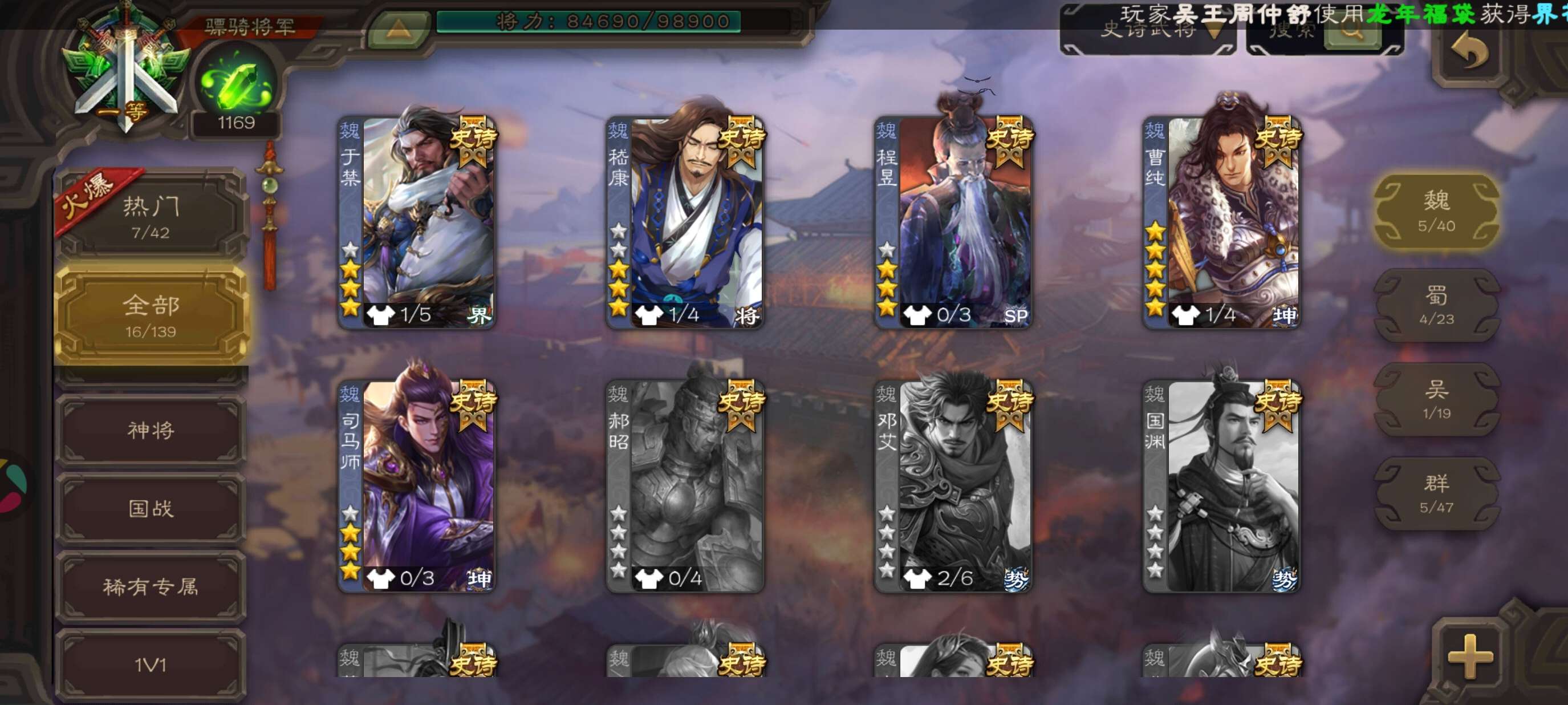 史诗武将数量: