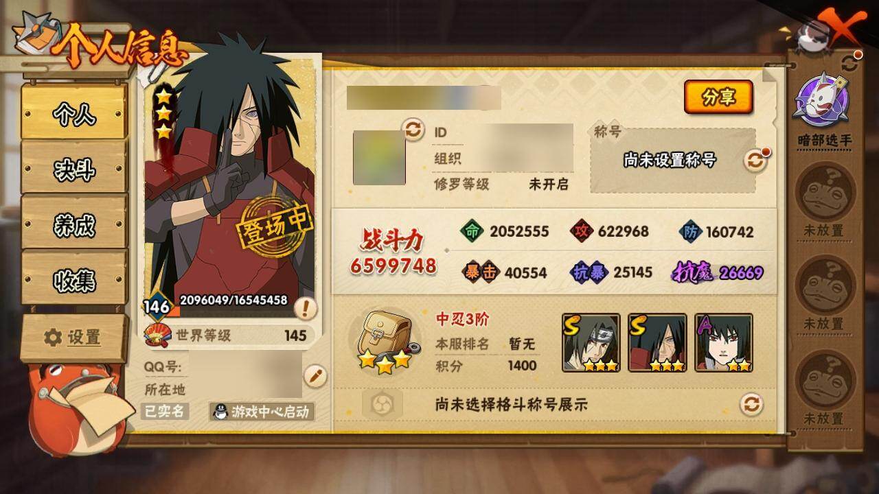 V8/战力659W/S忍15/A忍323星宇智波佐助「永恒万花筒」,3星宇智