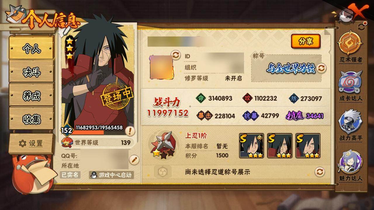 V10/战力1199W/S忍24/A忍333星大筒木桃式,3星宇智波佐助「永
