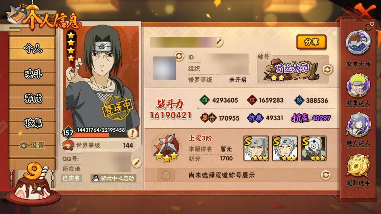 V0/战力1619W/S忍26/A忍453星宇智波佐助「永恒万花筒」,3星宇