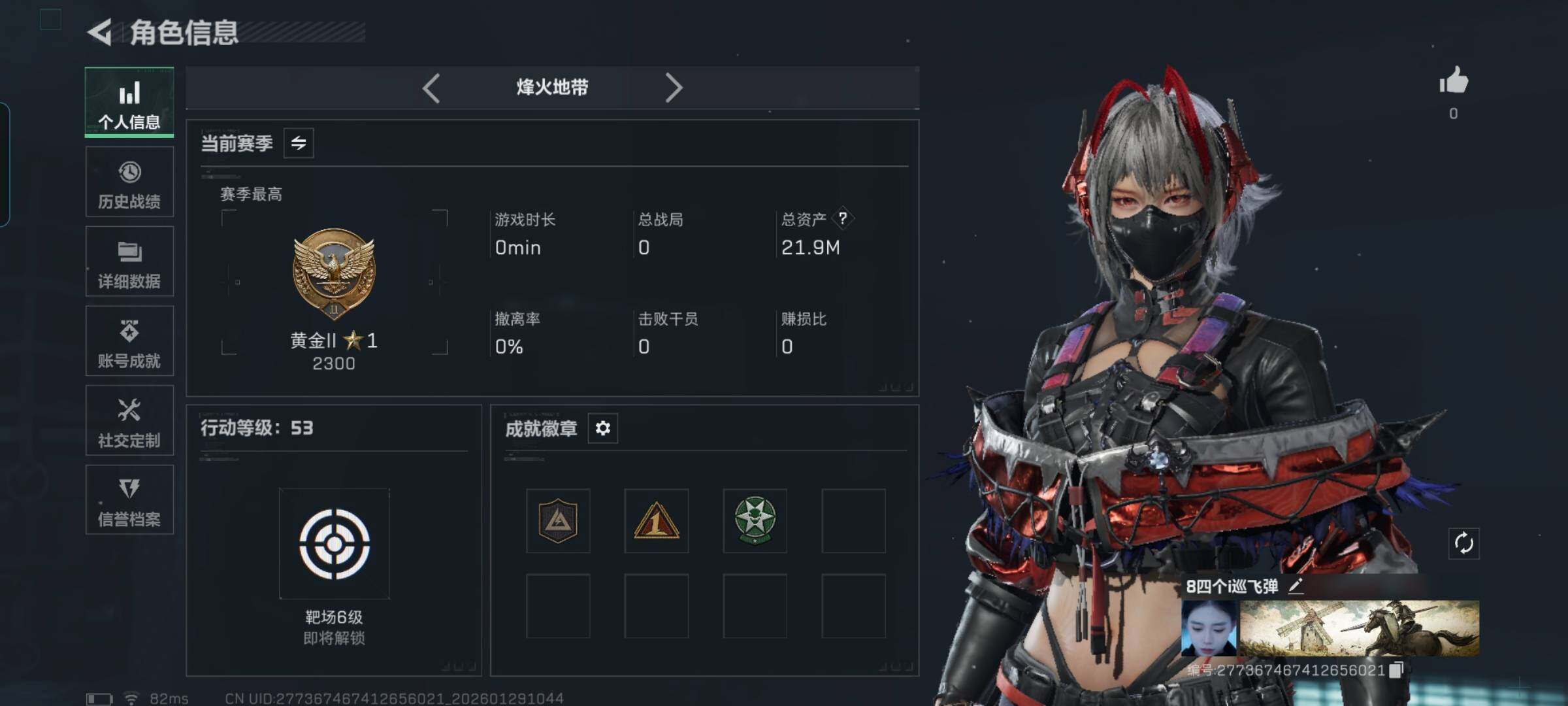aa44,骇爪红皮,三端互通烽火53级,总资产21.9M,哈夫币4174K,3橙枪,2金吊饰,黑鹰匕首,蚀金玫瑰差4发,仓库7级训练中心5级靶场3级
