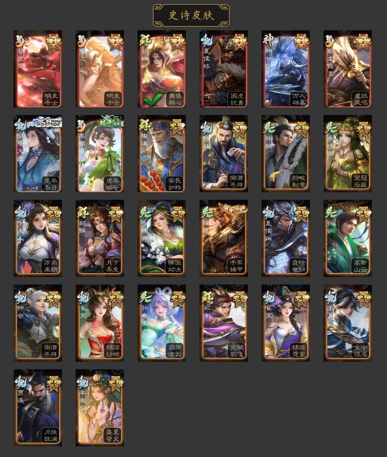 官阶:骠骑将军;VIP等级:VIP8;史诗武将数量:14;动态皮肤数量:7;武