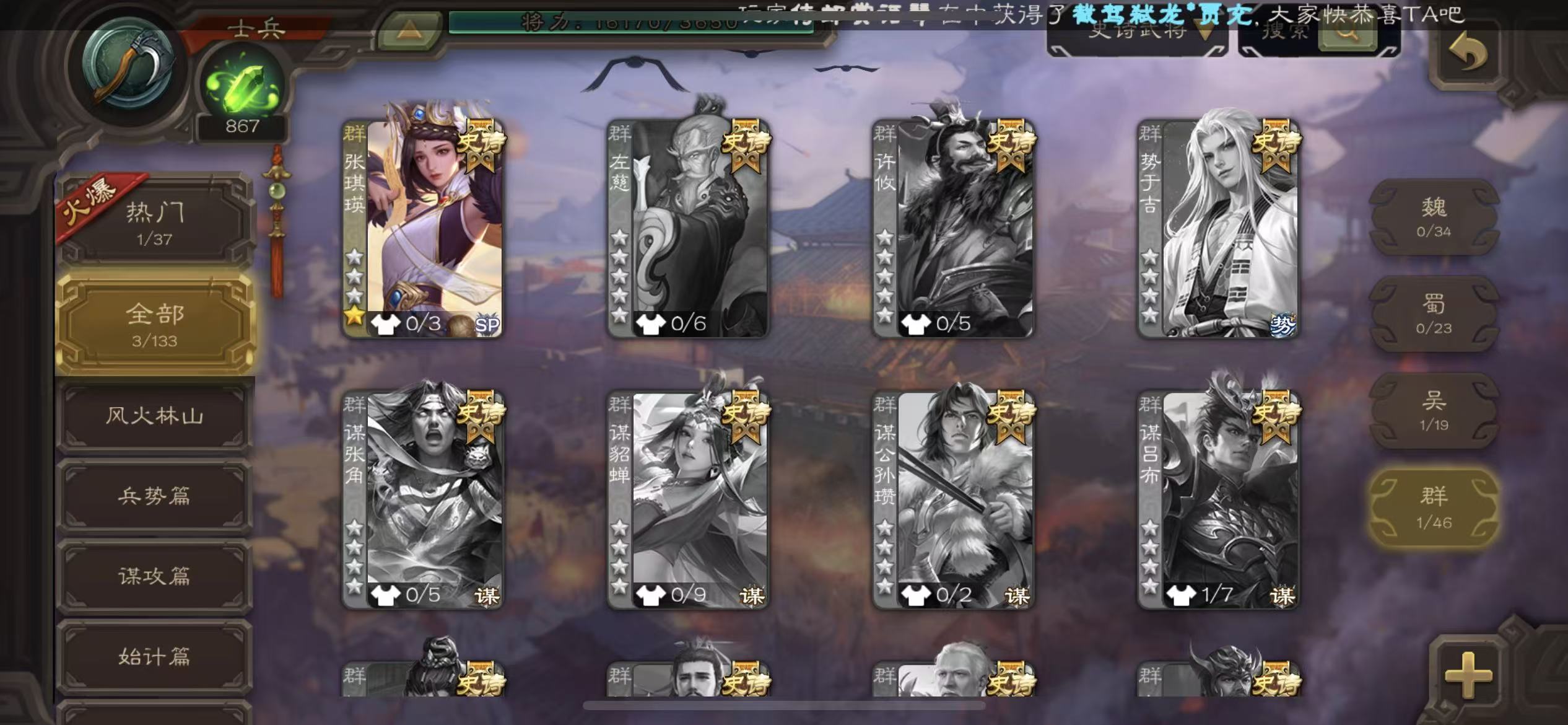 史诗武将数量: