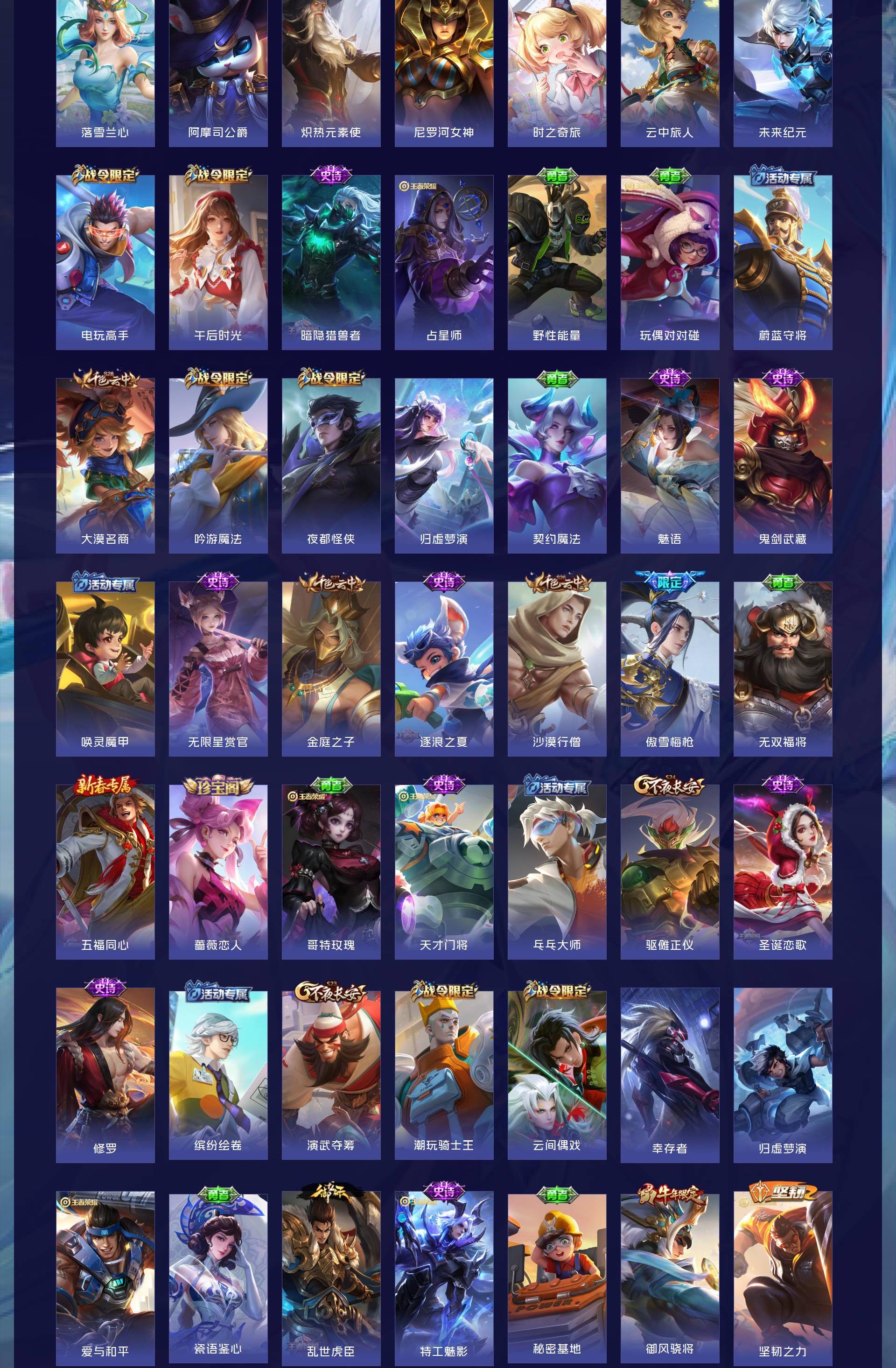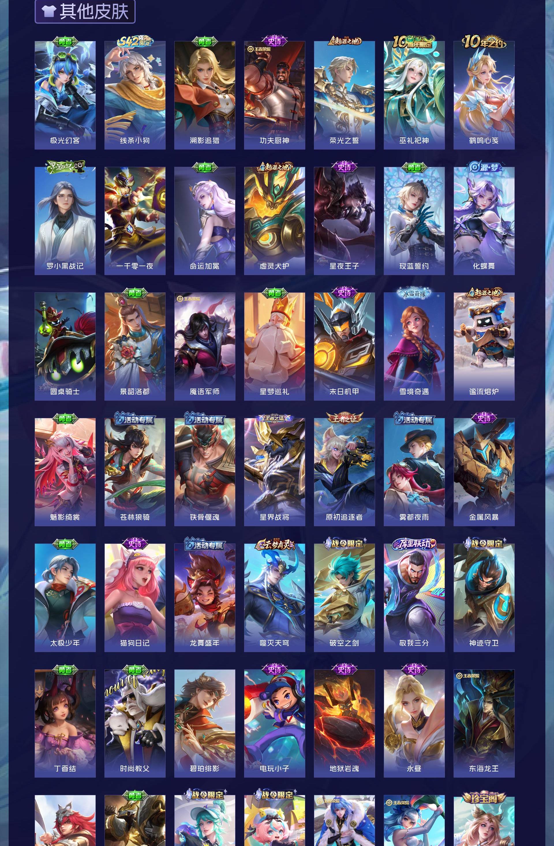 V7 皮肤279 英雄128 最强王者 荣耀典藏2 珍品传说1 传说9 其他皮肤272