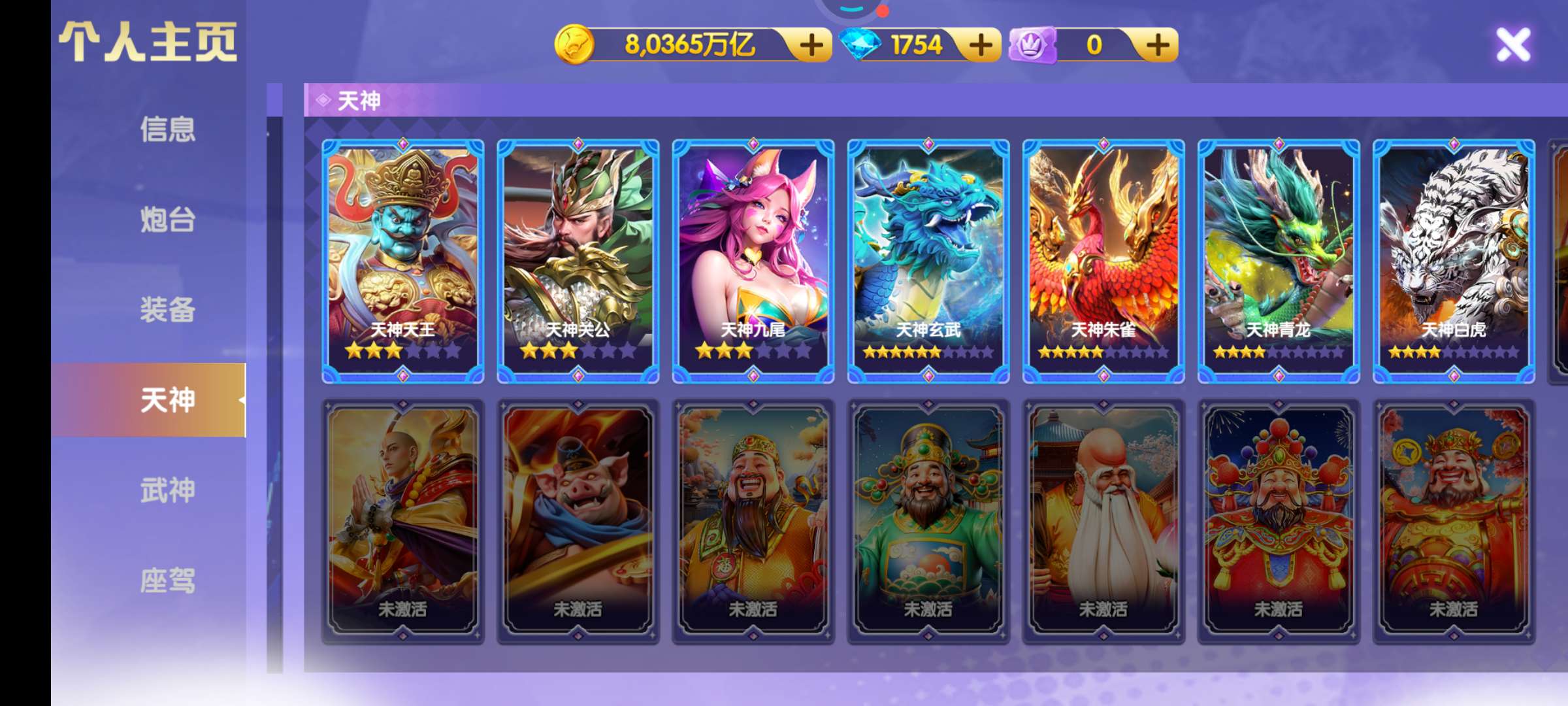鱼乐小米,二级洪荒,五武神,8京,天神全三星,9000炮,其他见图