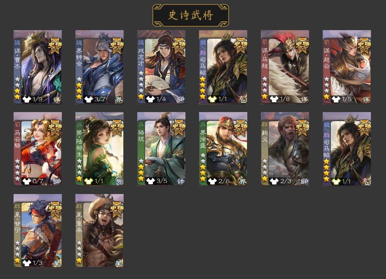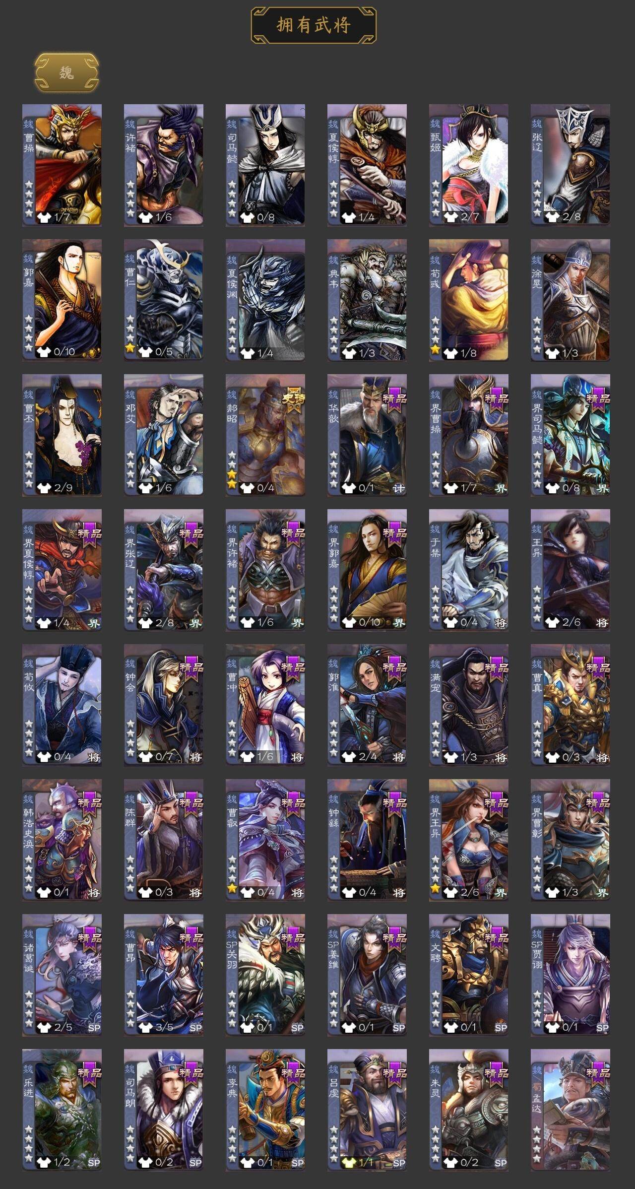 郝昭,谯周,界黄忠,SP关羽,乐进,曹昂,诸葛诞,朱灵,文聘,SP姜维,钟会,曹冲,郭淮,满宠,界王异,界曹操,界司马懿,界夏侯惇,界张辽,界许褚,界郭嘉,李典,曹真,韩浩史涣,陈群,