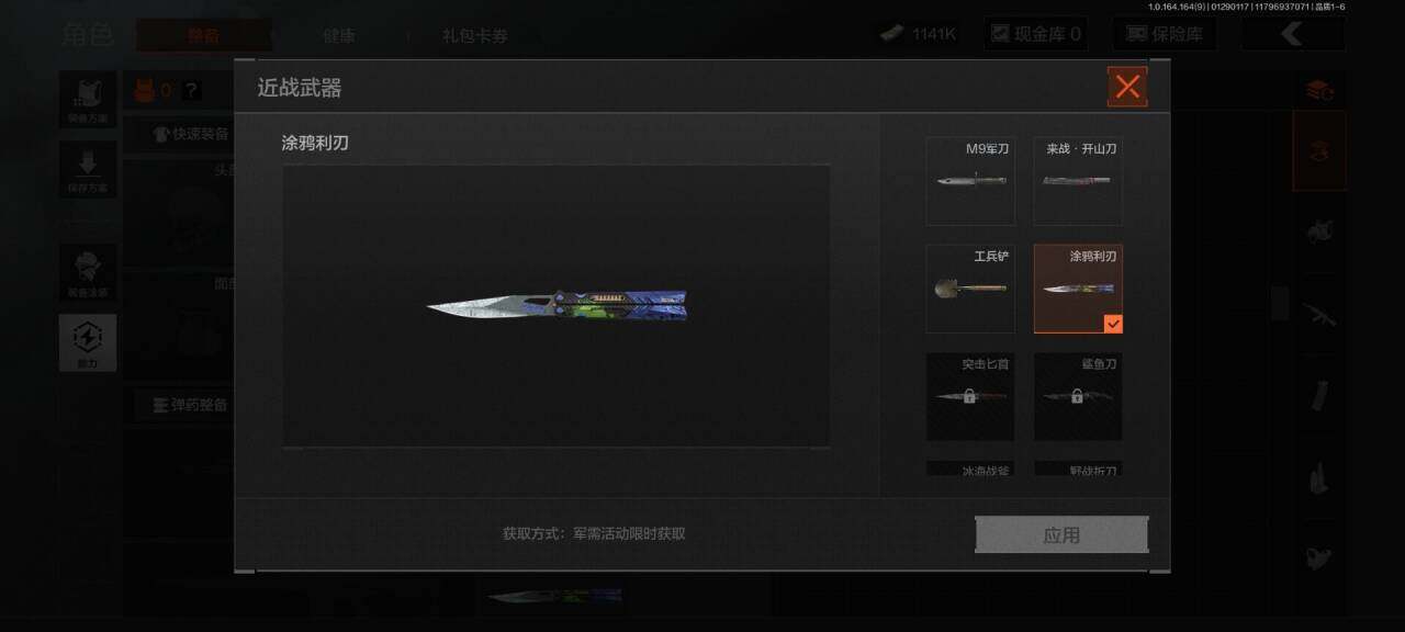 仓库价值(百万):15.8/柯恩币:1141000/涂鸦利刃/黑卡蒂