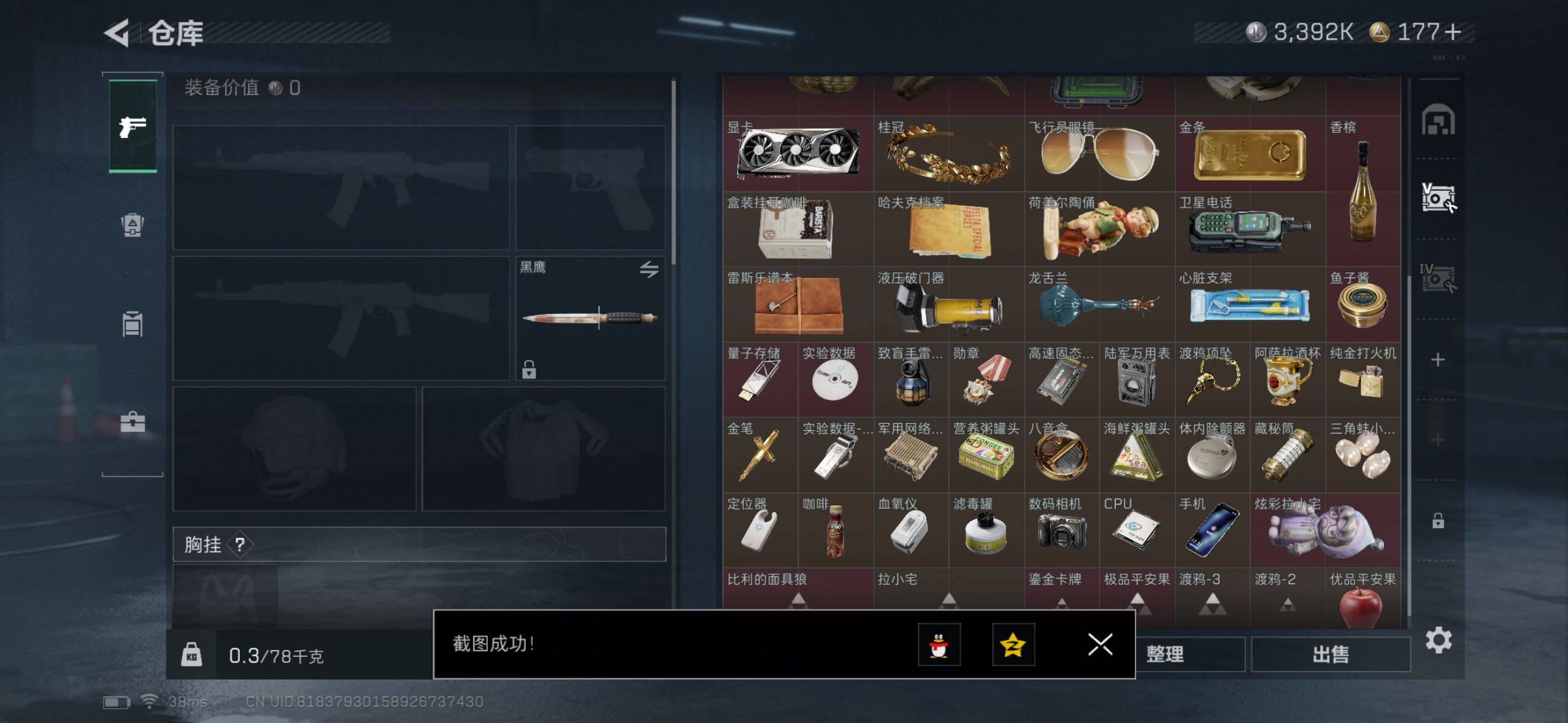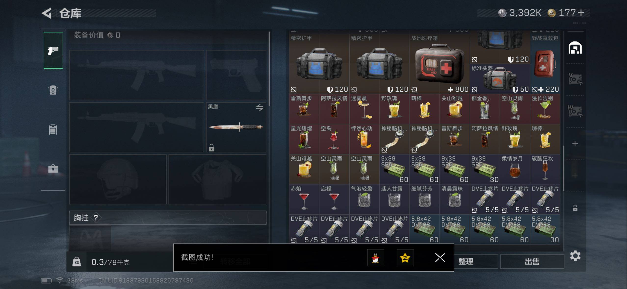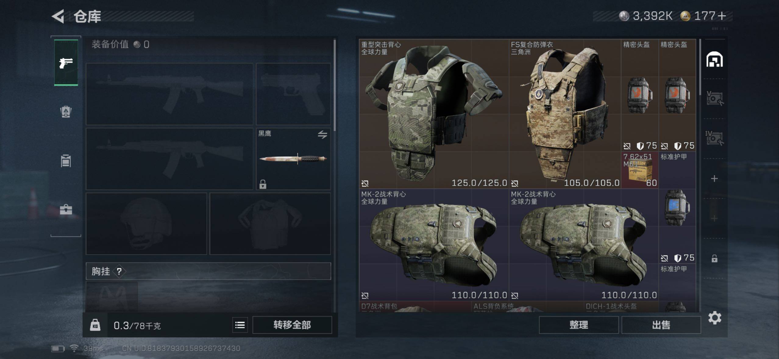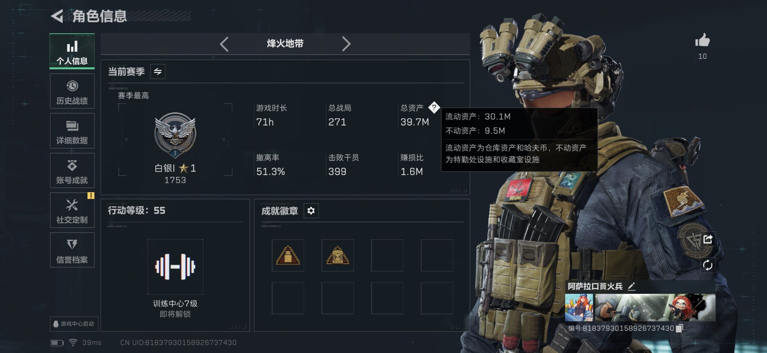 39m总资产-3392k哈伏币-55烽火等级-白银-1战场等级-无军衔