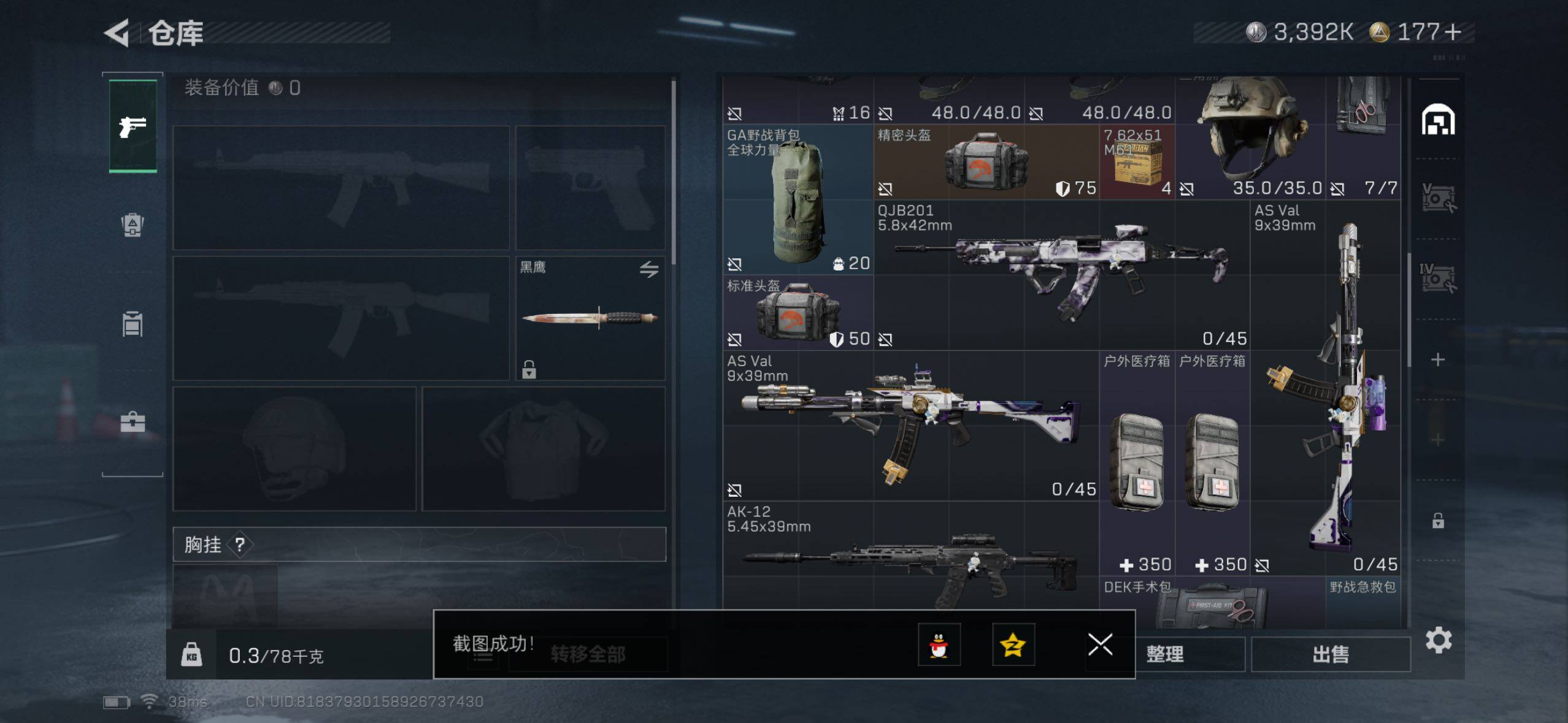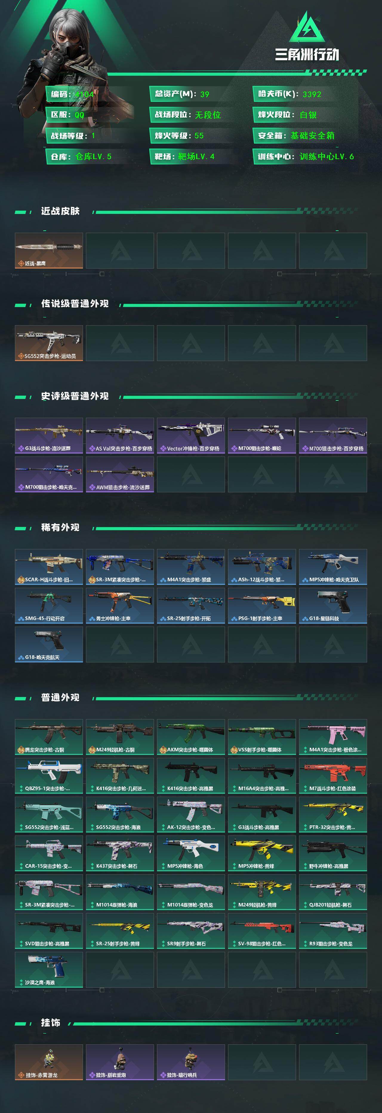 39m总资产-3392k哈伏币-55烽火等级-白银-1战场等级-无军衔【近战