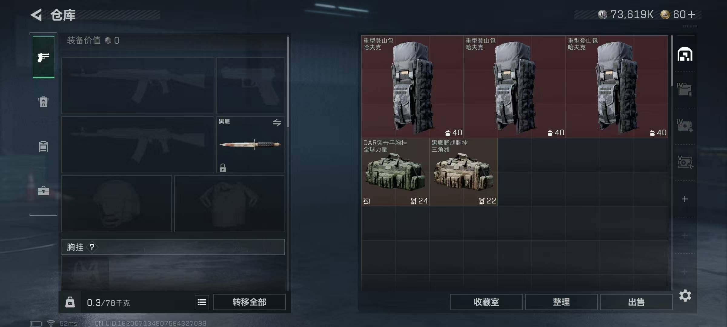 120m总资产-73619k哈伏币-51烽火等级-三角洲巅峰-1战场等级-无军