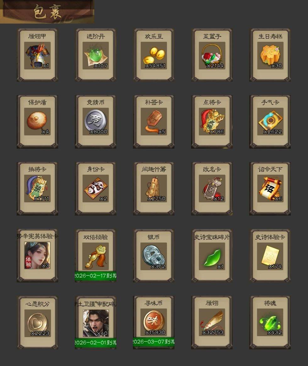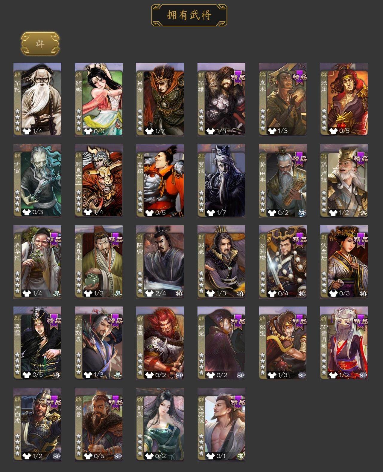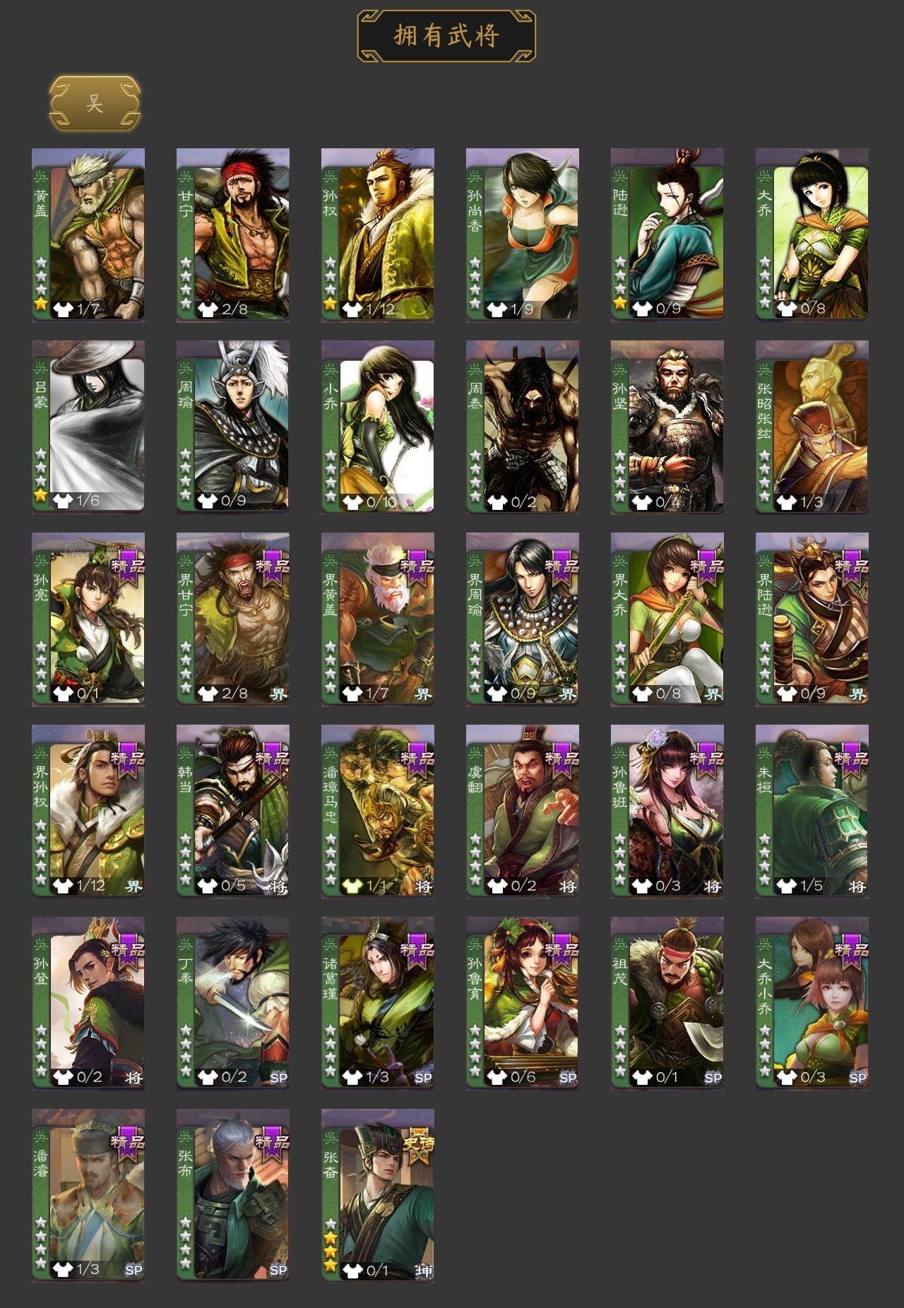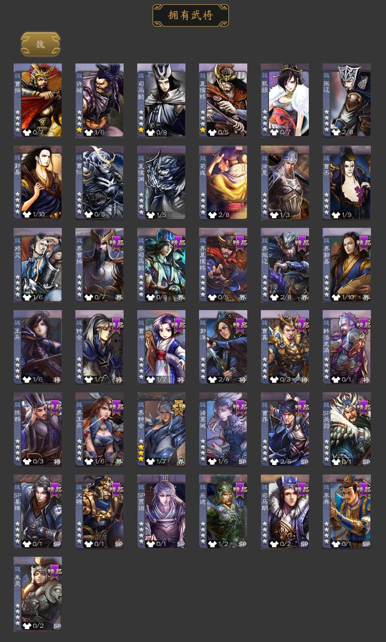 神刘备,界钟会,沙摩柯,张奋,SP关羽,乐进,曹昂,诸葛诞,朱灵,文聘,SP姜维,钟会,曹冲,郭淮,界王异,界曹操,界司马懿,界夏侯惇,界张辽,界郭嘉,李典,曹真,韩浩史涣,陈群,司马朗,S