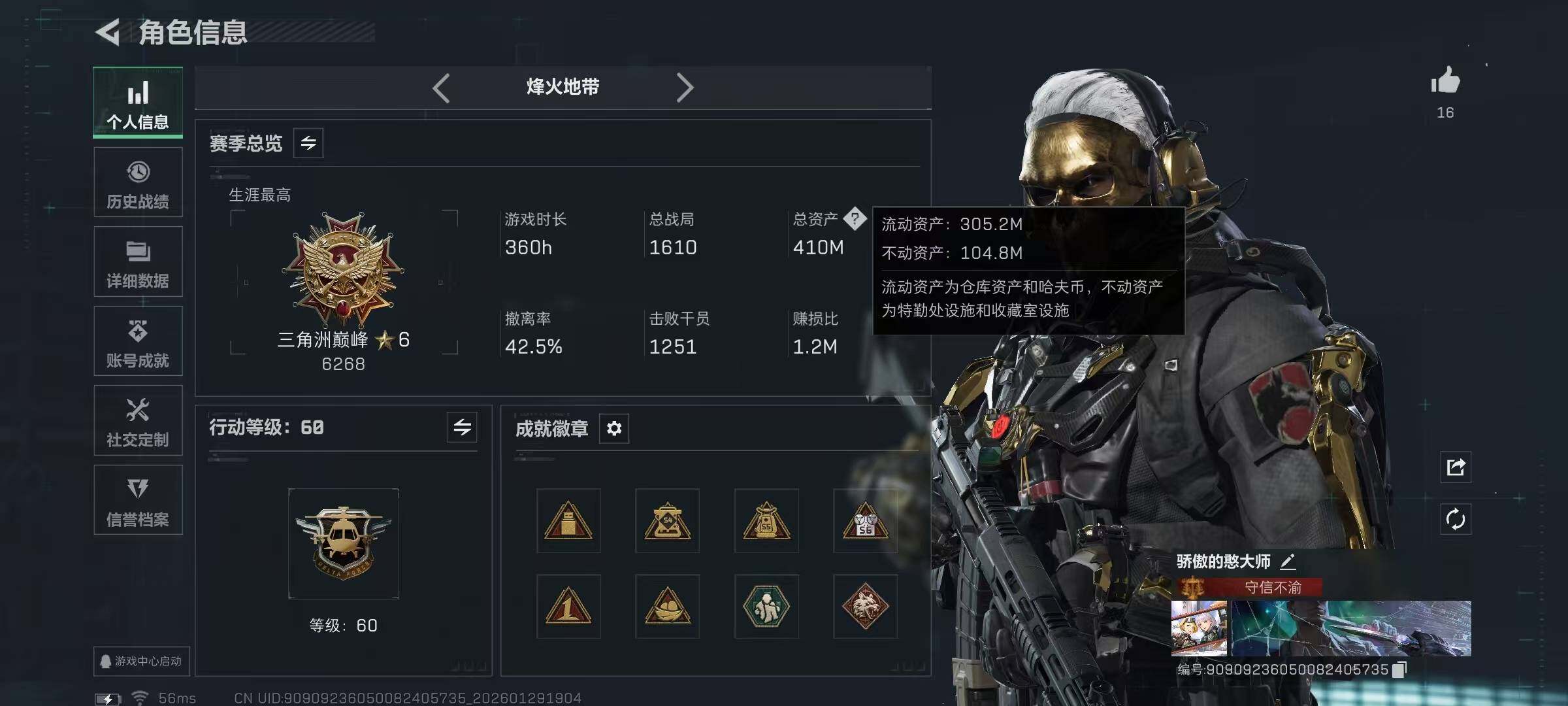 【SJ640】【满体满负北极星带S6赛季顶级安全箱皮肤(蚀金华彩)】60级/总资410M/流资305M/1073点卷/刀皮(北极星)红狼(蚀金玫瑰+电锯惊魂)无名(夜鹰)蜂医(送葬人无题密令)深蓝(不破誓约)露娜(黑天际线)骇爪(维什戴尔)/10级仓库7级体力7级负重2级潜水/132发AW子弹+238发其他红弹