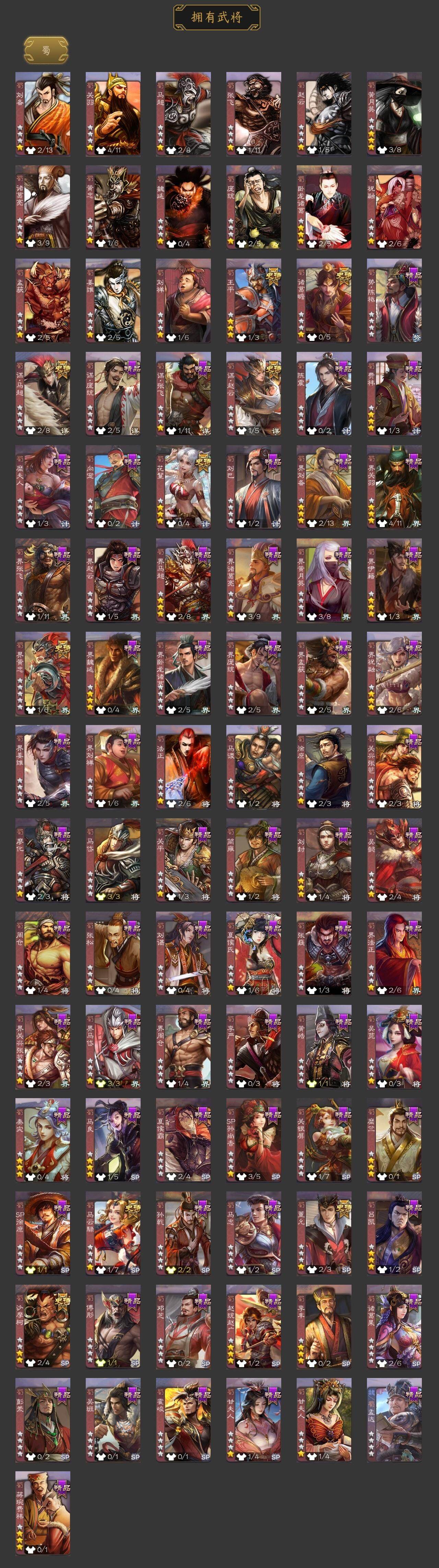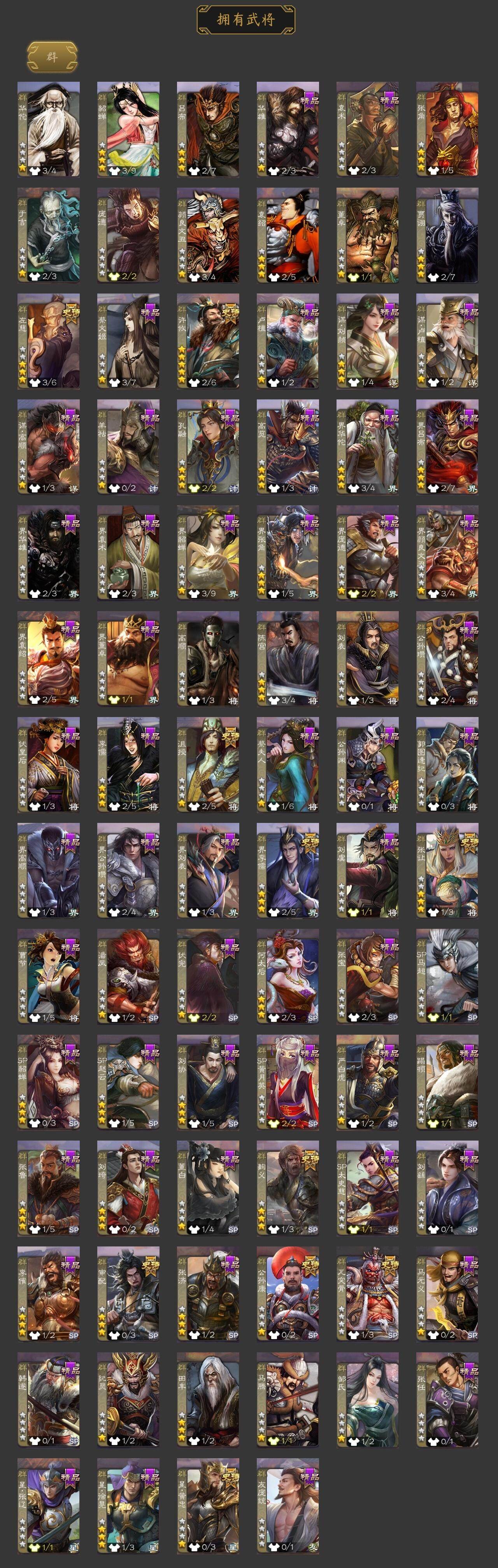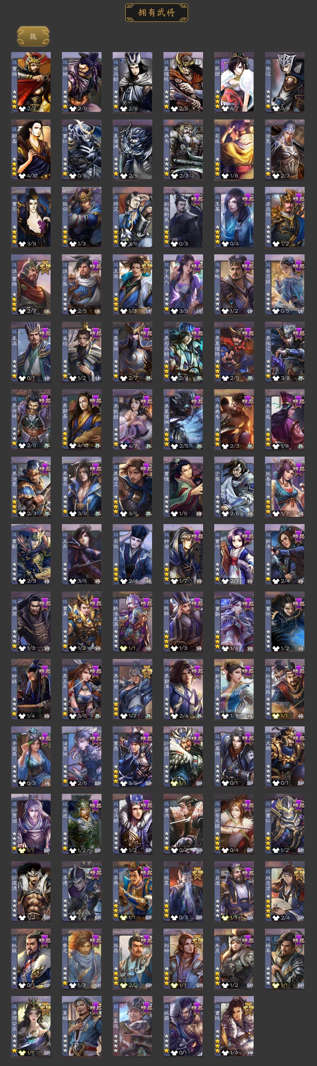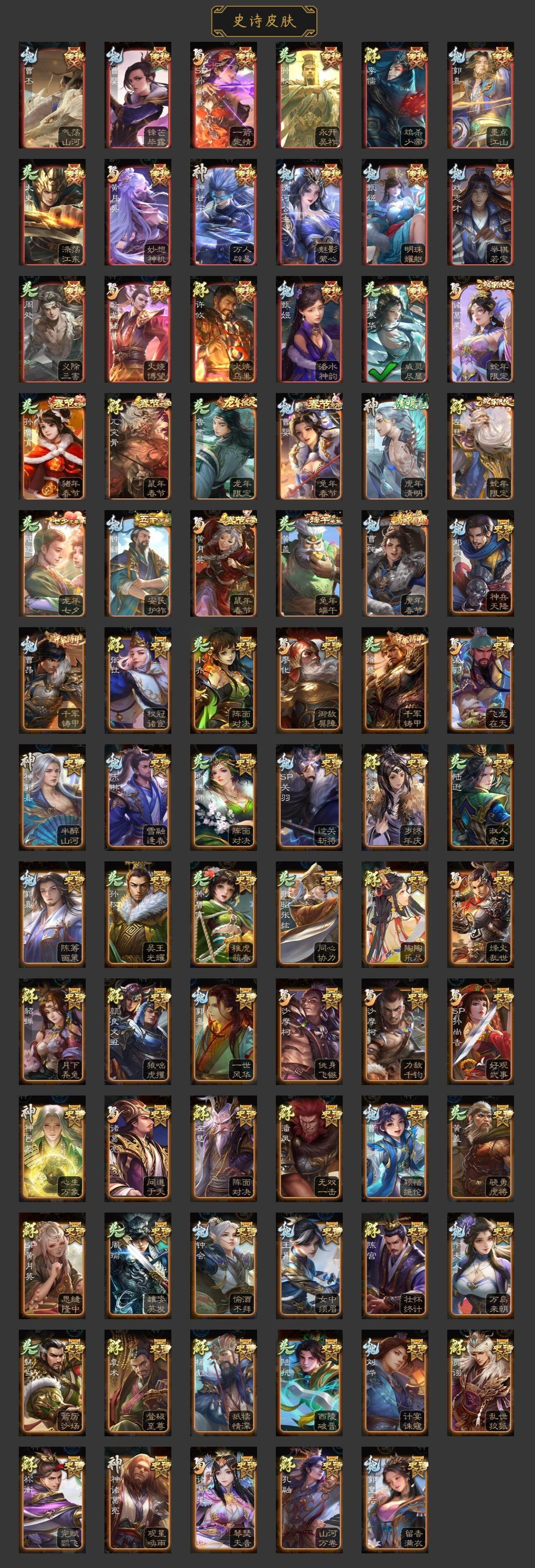 神吕布,神赵云,神陆逊,神甘宁,神郭嘉,神诸葛亮,王粲,谋曹操,界钟会,曹纯,戏志才,刘晔,清河公主,程昱,马云騄,谋赵云,谋马超,诸葛瞻,王平,沙摩柯,界黄忠,花鬘,董允,留赞,界