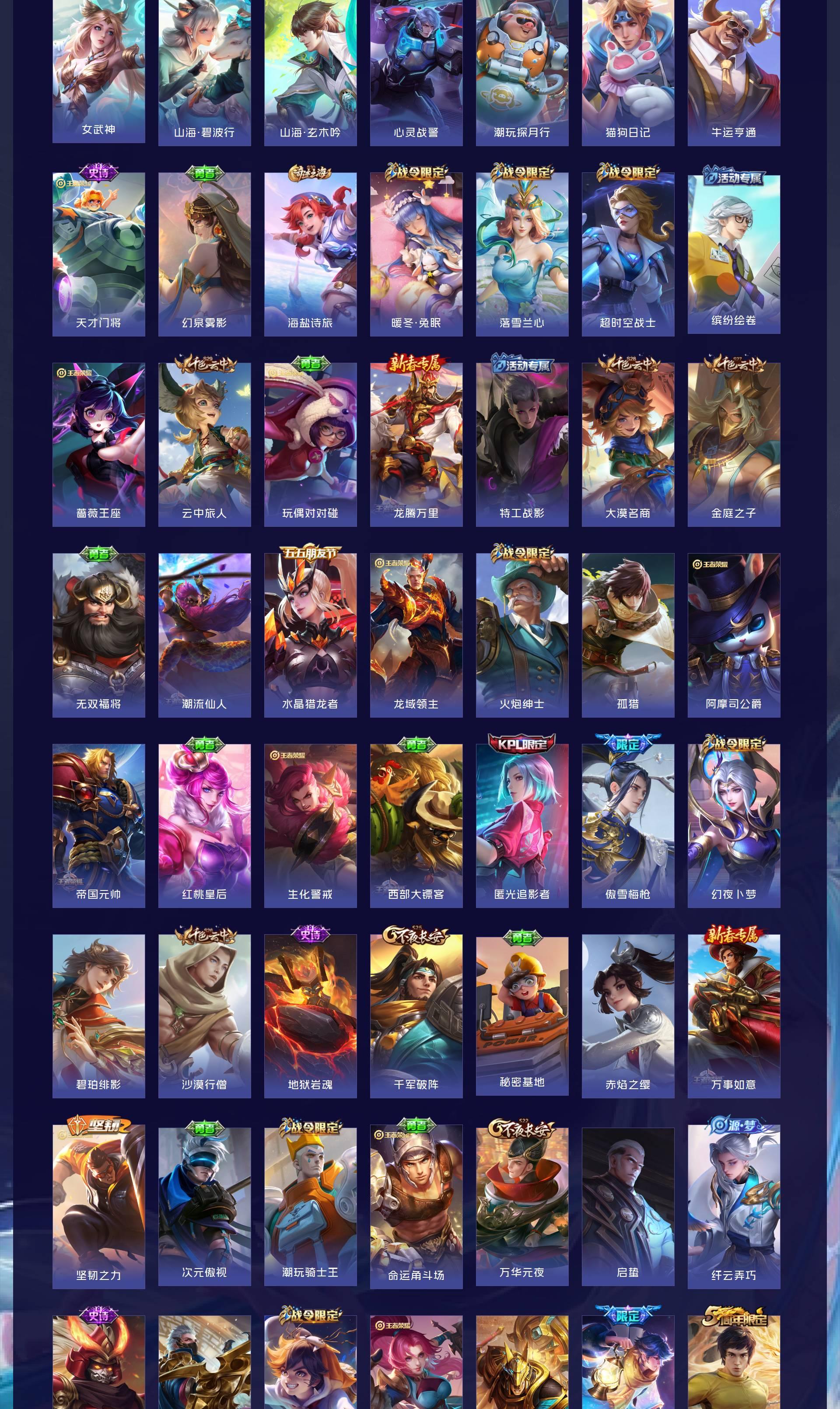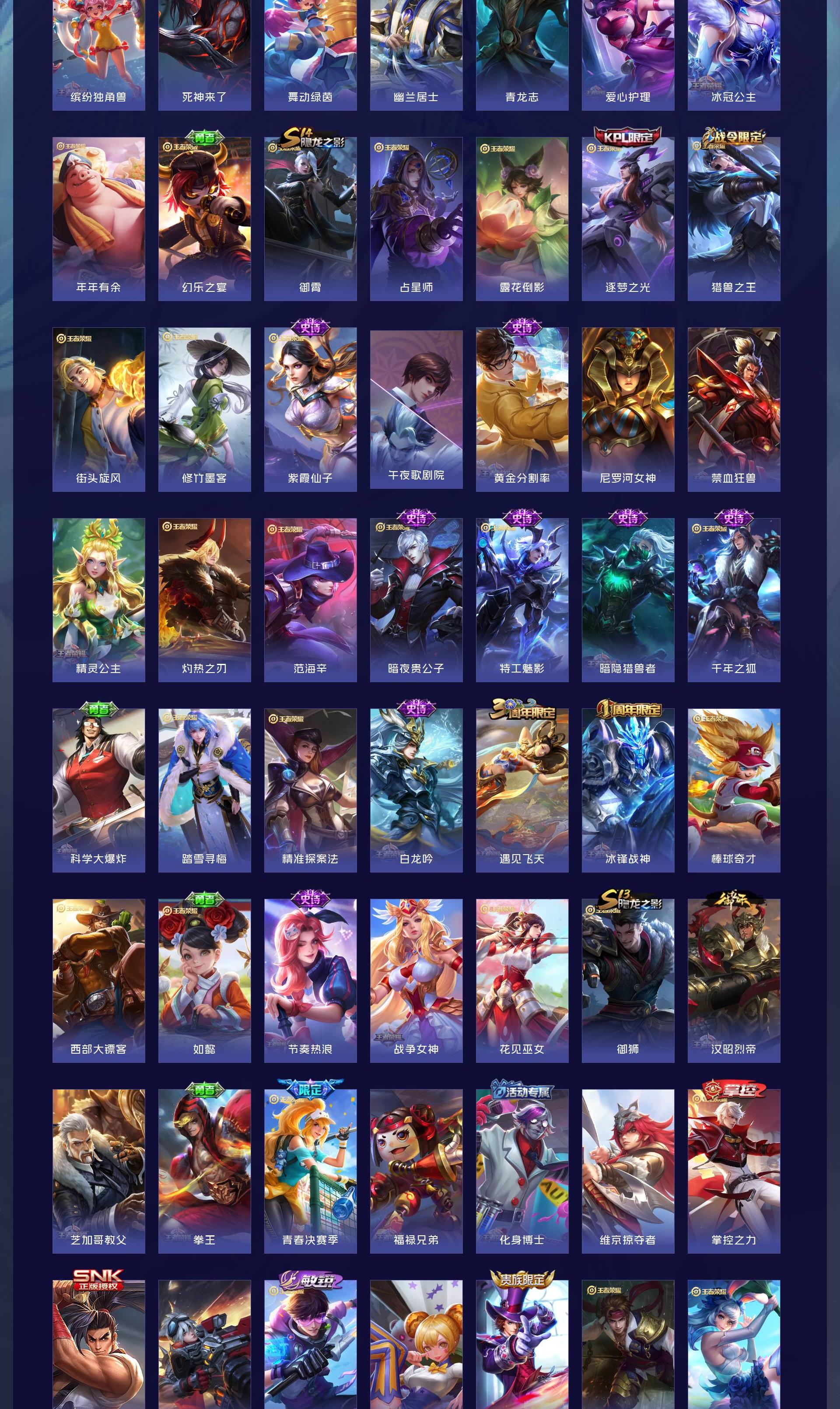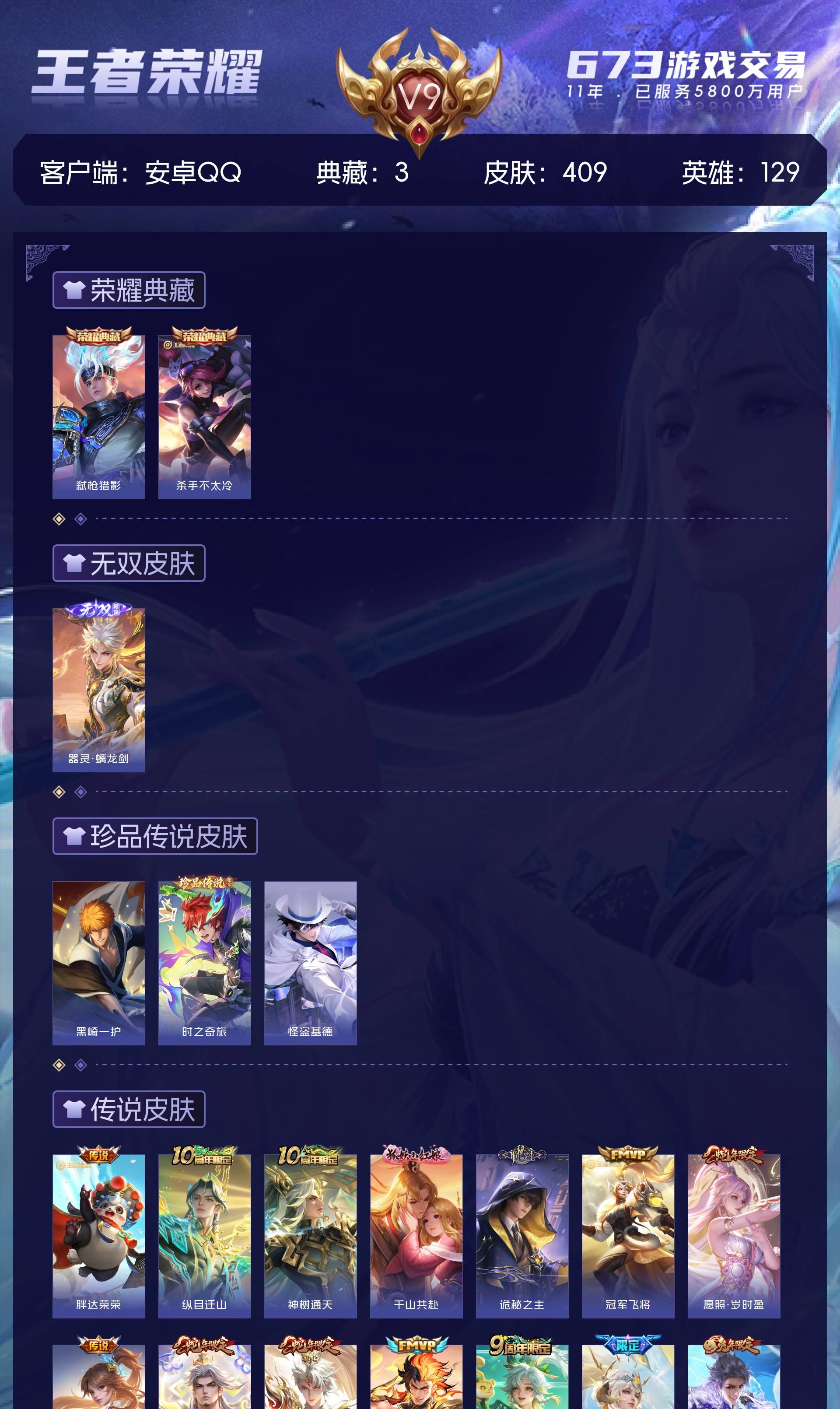 V9 皮肤409 英雄129 最强王者 荣耀典藏3 无双皮肤1 珍品传说3 传说30 其他皮肤376