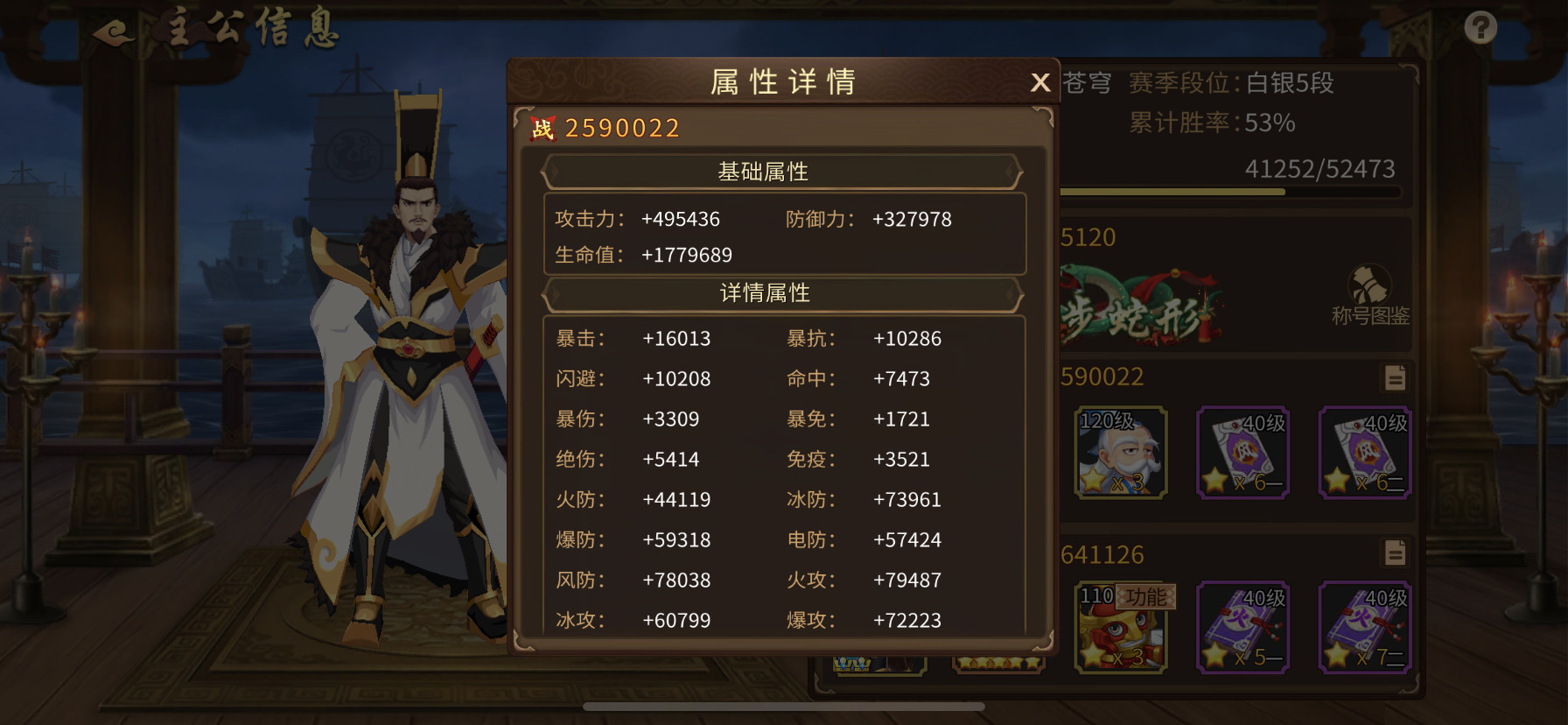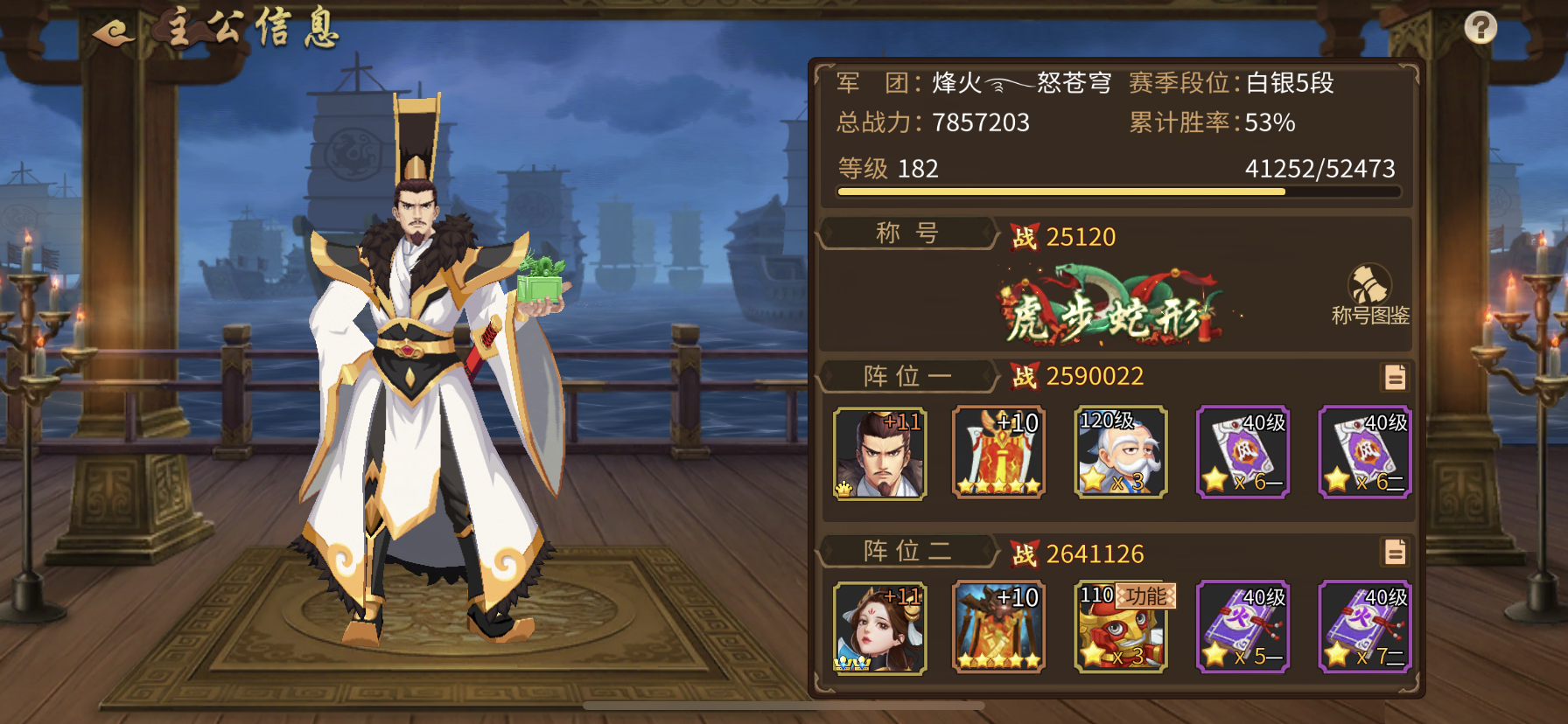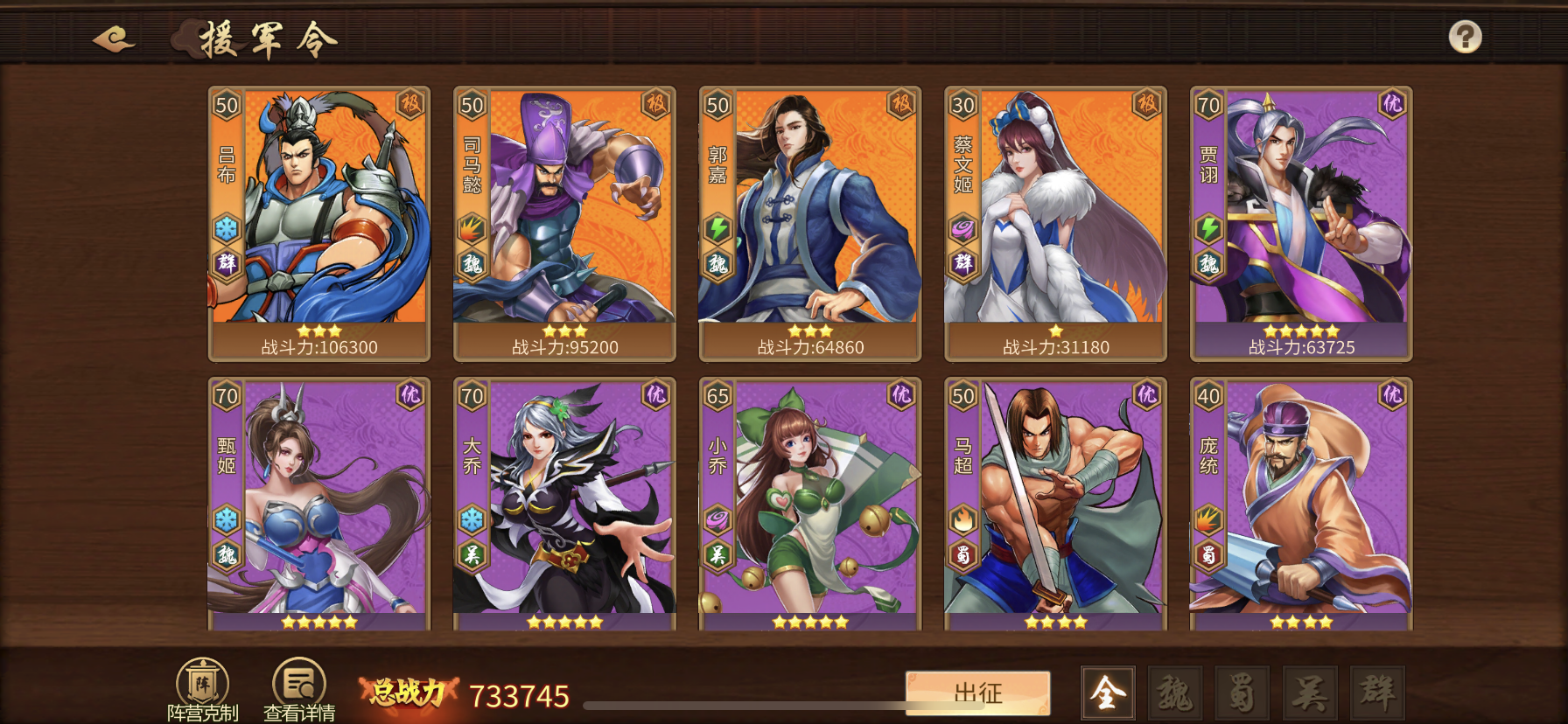 最高攻击51万,三个橙色援军,两个有大招。宠物也不错。兵法6星。