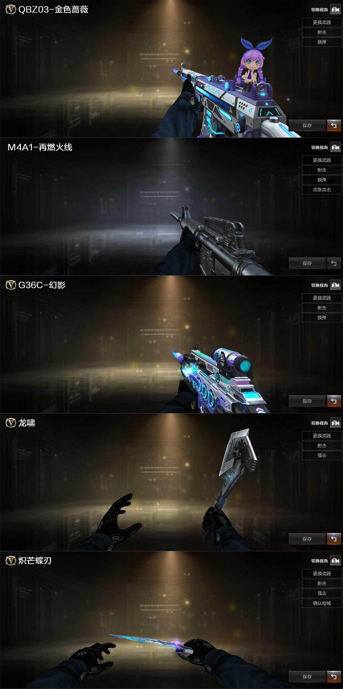 【皮肤】:金色蔷薇-破浪逐光 皮肤,M4A1-再燃火线,幻影-破浪逐光 皮肤,轻型军用手斧-再燃火线,炽芒蝶刃-破浪逐光 皮肤