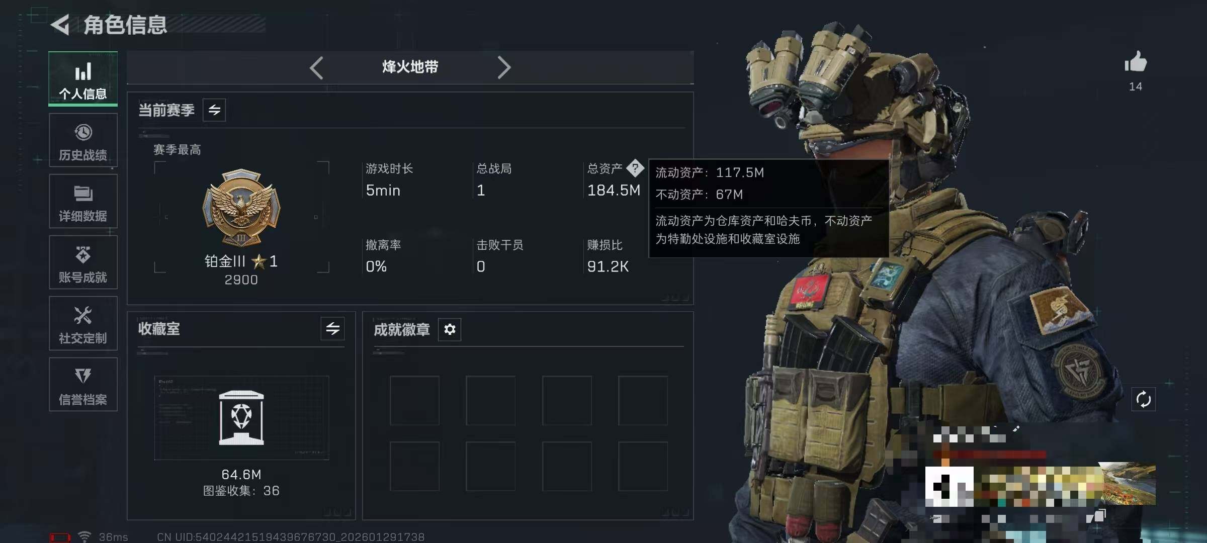 总资产(M):184M/哈夫币(K):1138K