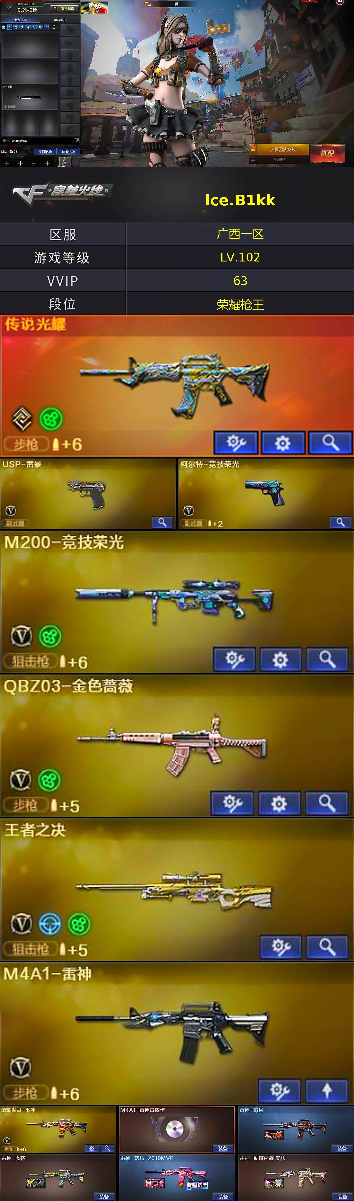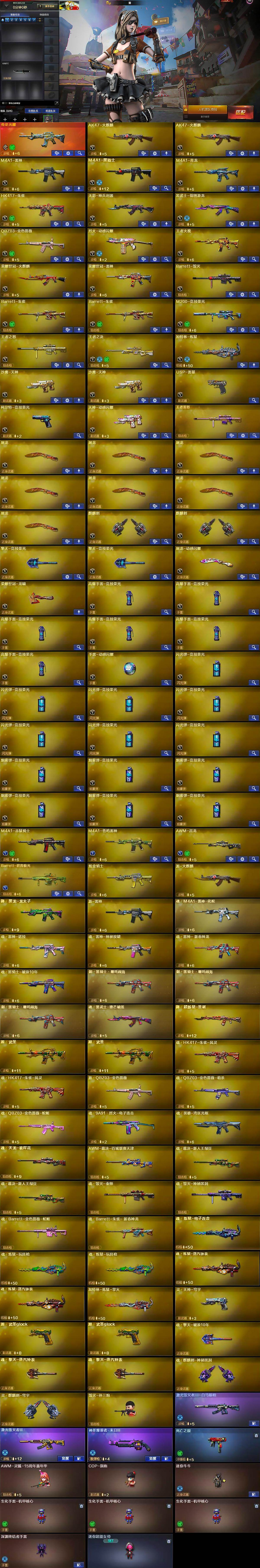 【热门武器】:传说光耀,QBZ03-金色蔷薇,HK417-朱雀,M4A1-青龙,M200-竞技荣光,死亡之眼,荣耀世冠-火麒麟,荣耀世冠-雷神,金色小号,M4A1-黑骑士,加特林-炼狱,羊驼玩偶*2,毁灭-孙三炮,USP-雷暴,荣耀世冠-龙啸