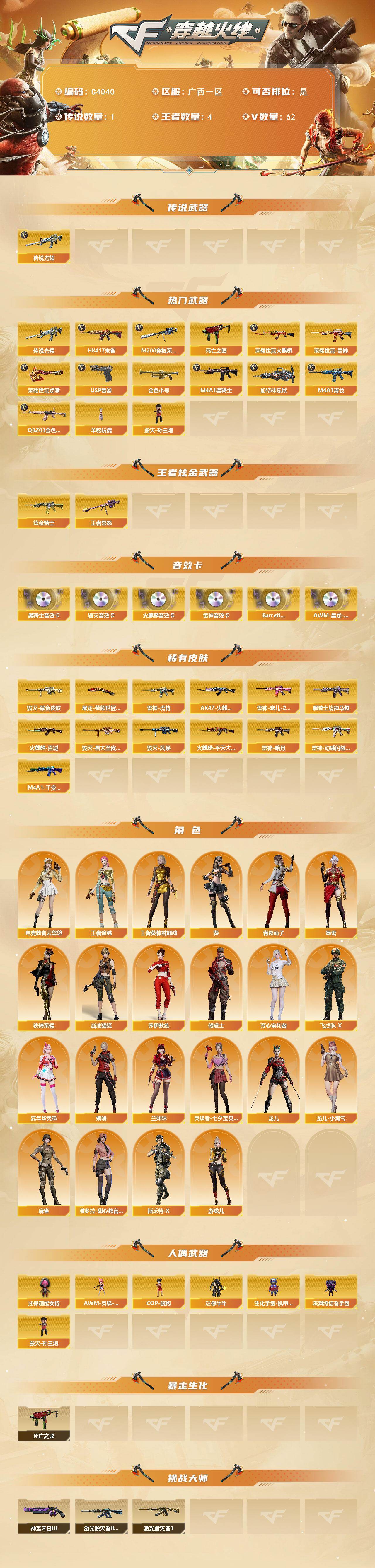 【C4040】广西一区-62V-4王者-1炫金