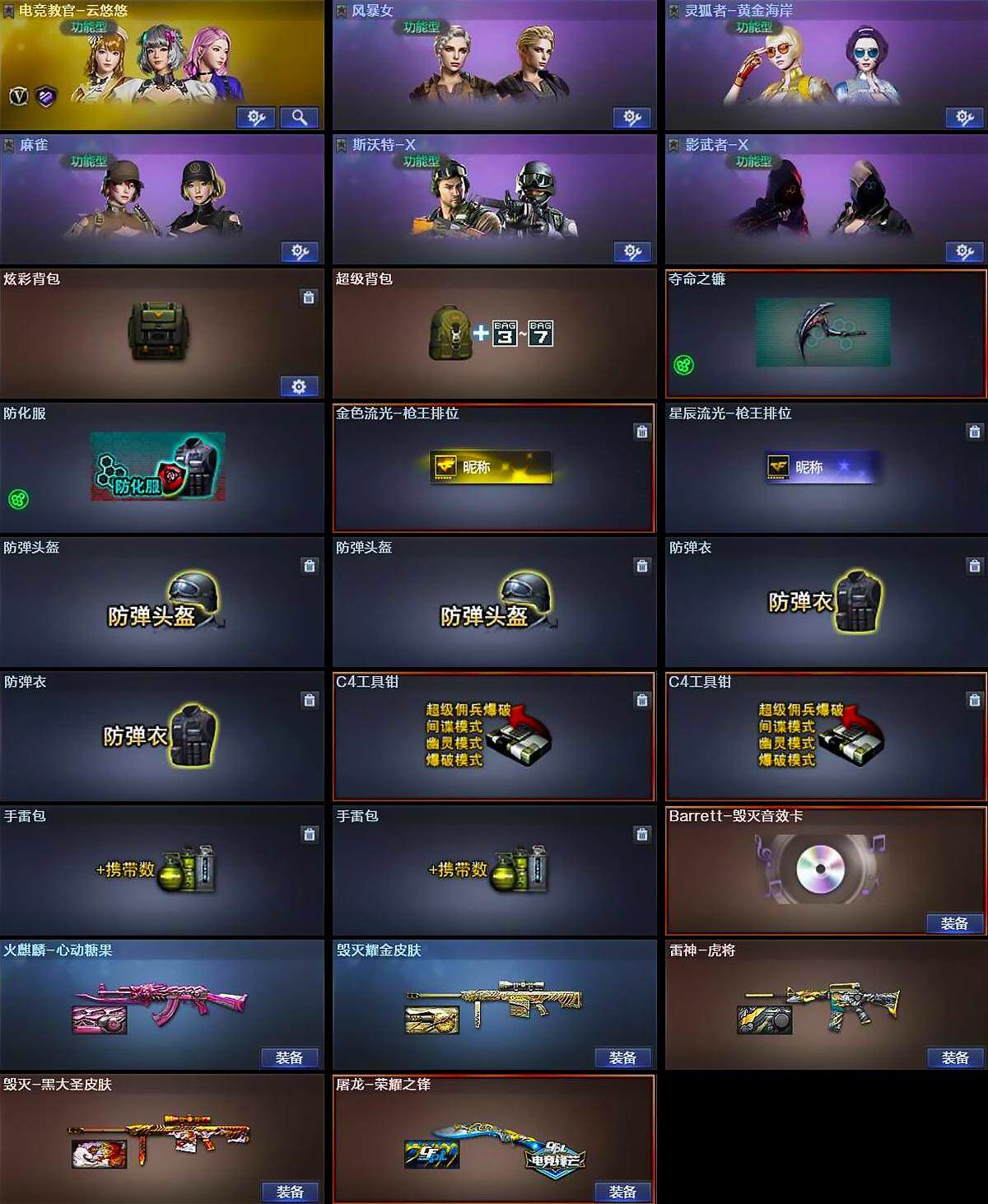 【皮肤】:雷神-虎将,火麒麟-心动糖果,毁灭耀金皮肤,毁灭-黑大圣皮肤,屠龙-荣耀之锋