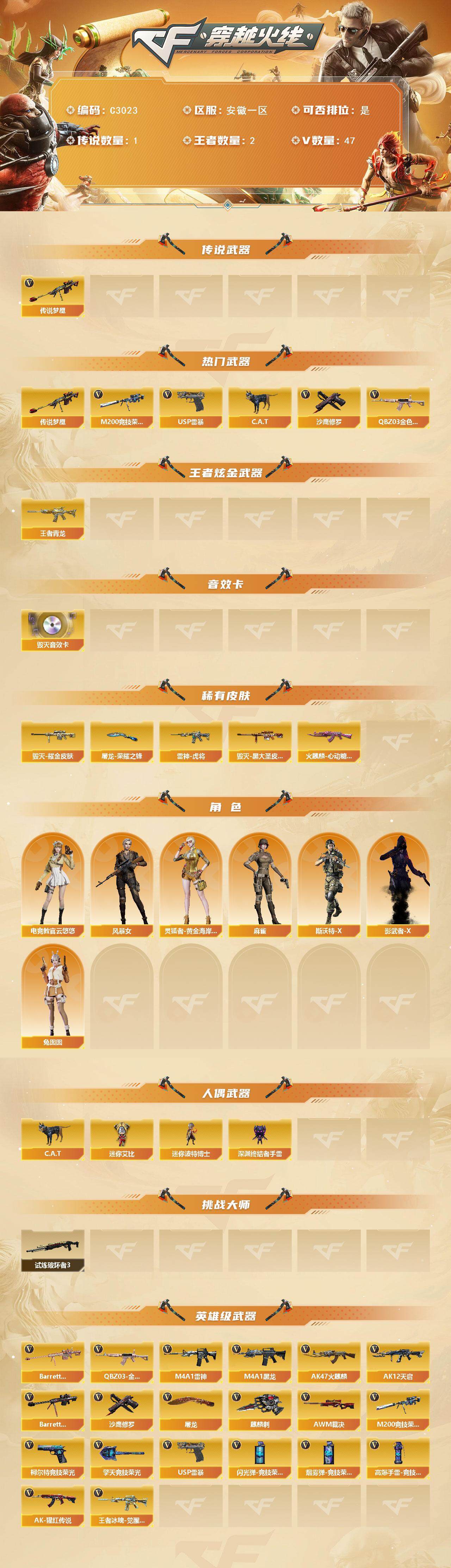 【热门武器】:传说梦魇,QBZ03-金色蔷薇,M200-竞技荣光,C.A.T,USP-雷暴,沙鹰-修罗