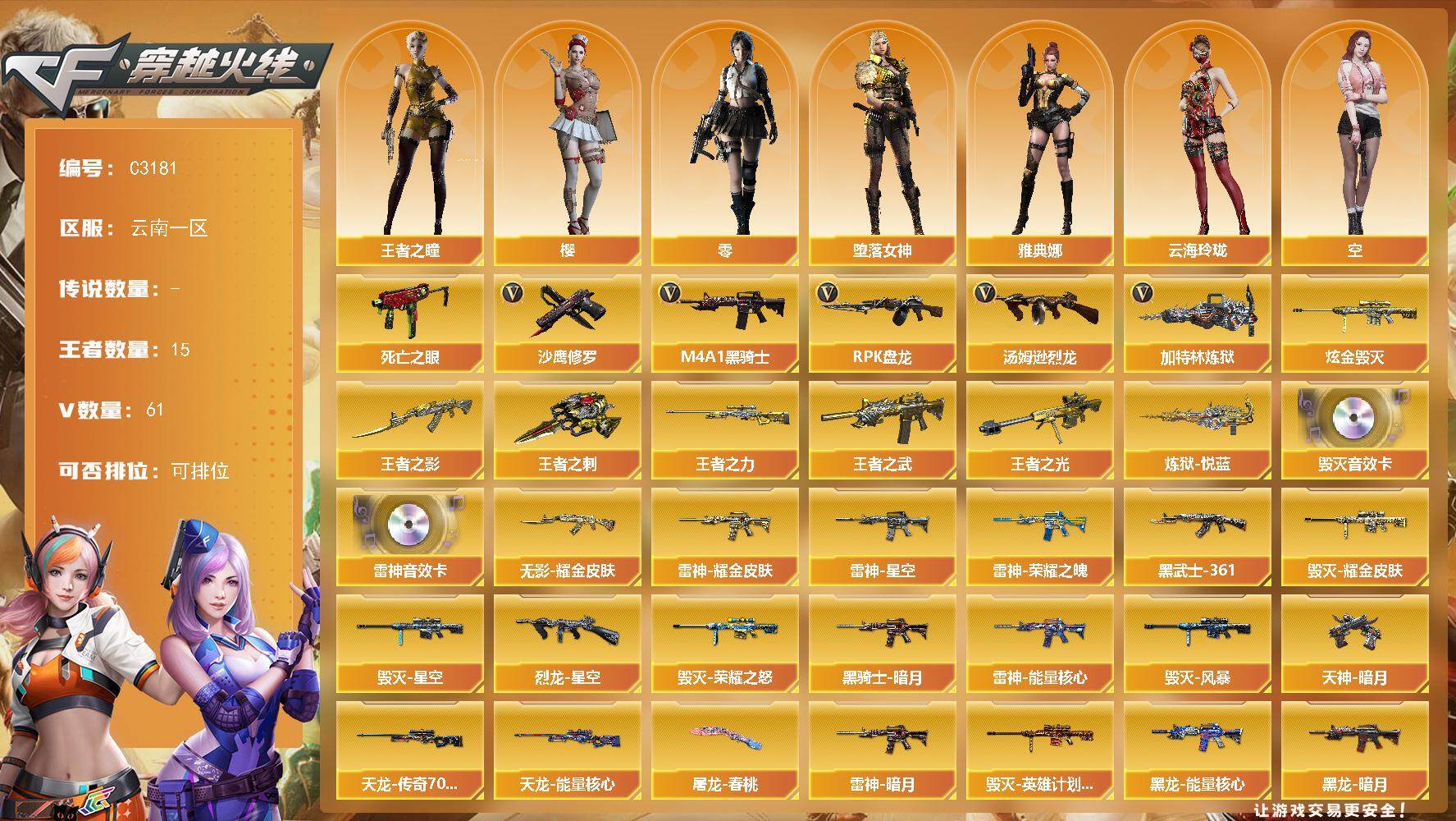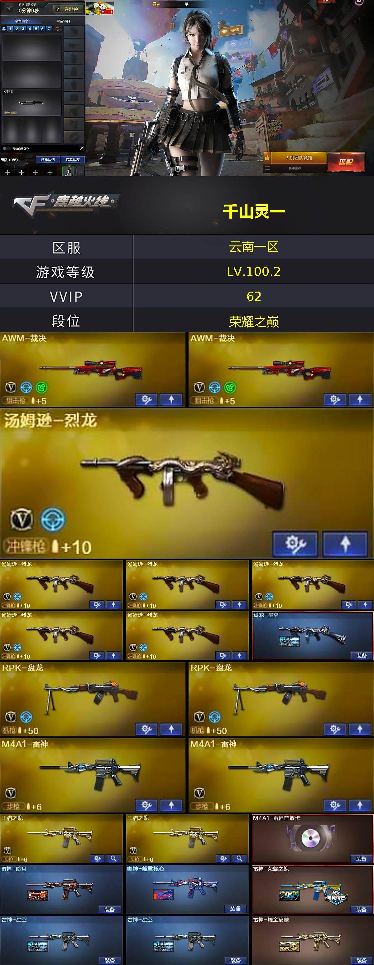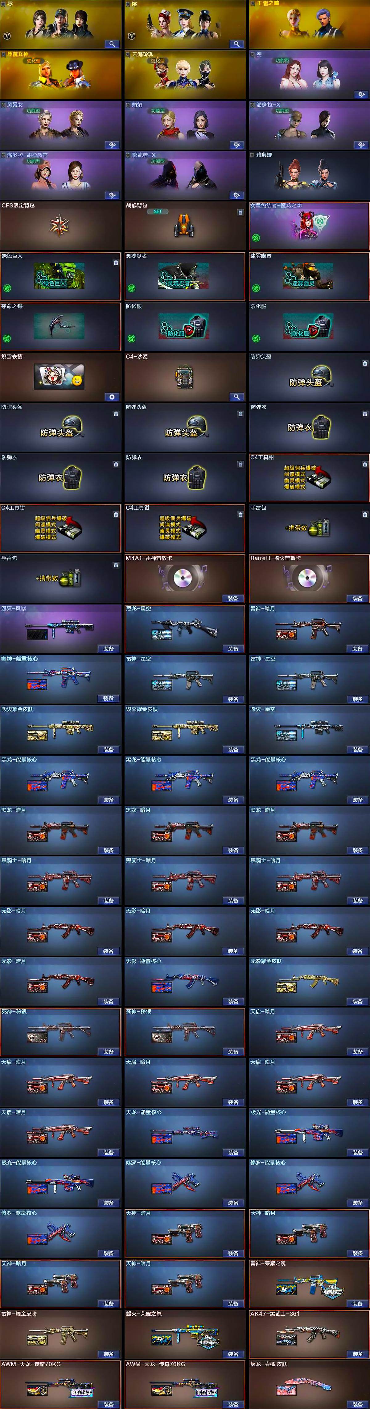 【热门武器】:死亡之眼,M4A1-黑骑士*2,汤姆逊-烈龙*6,RPK-盘龙*2,加特林-炼狱,沙鹰-修罗*5