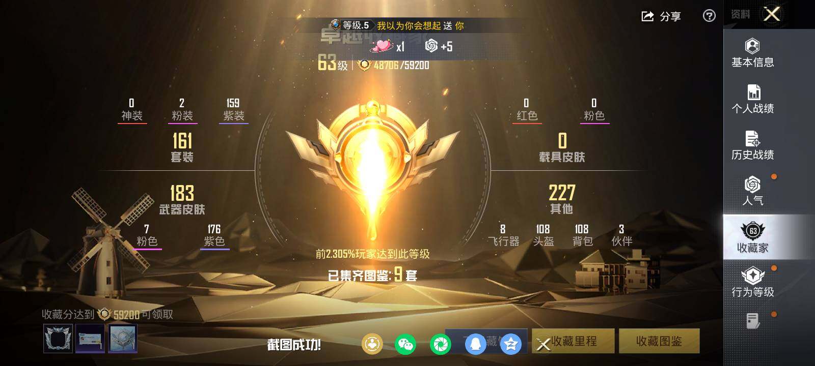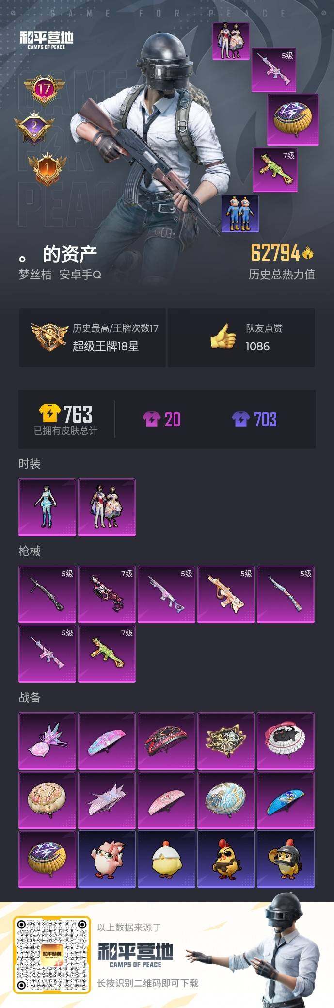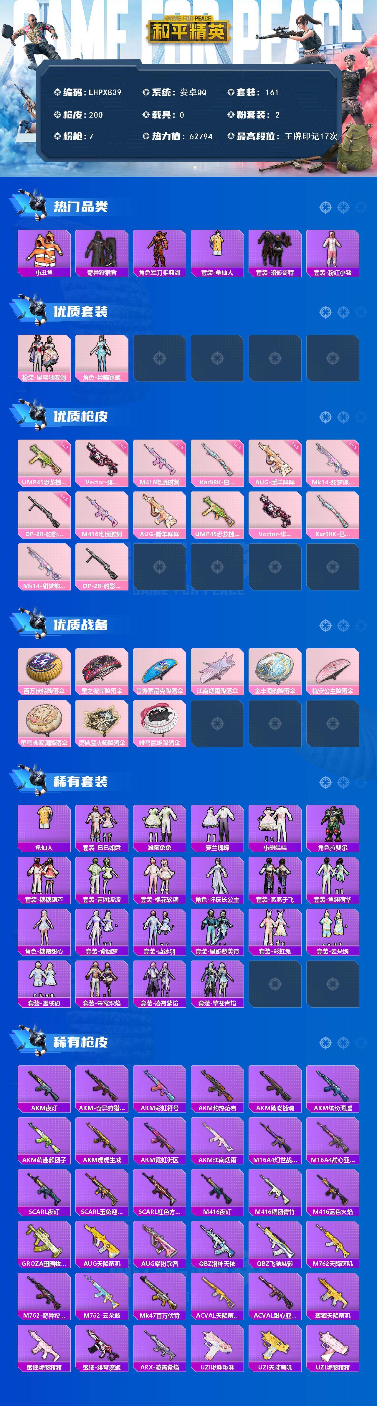 连体王者v6安卓 手Q-2粉装-7特效枪-0载具-1粉色飞行器-62794热力值-17王牌印记-161套装-200枪皮
