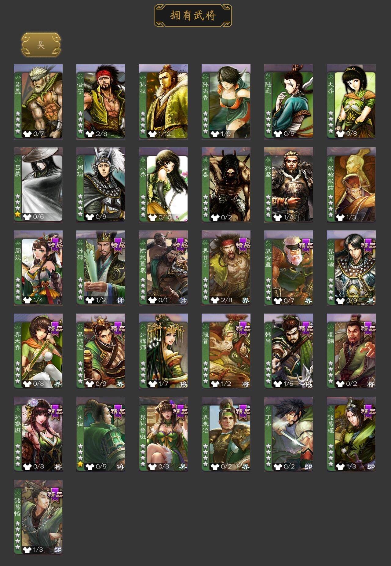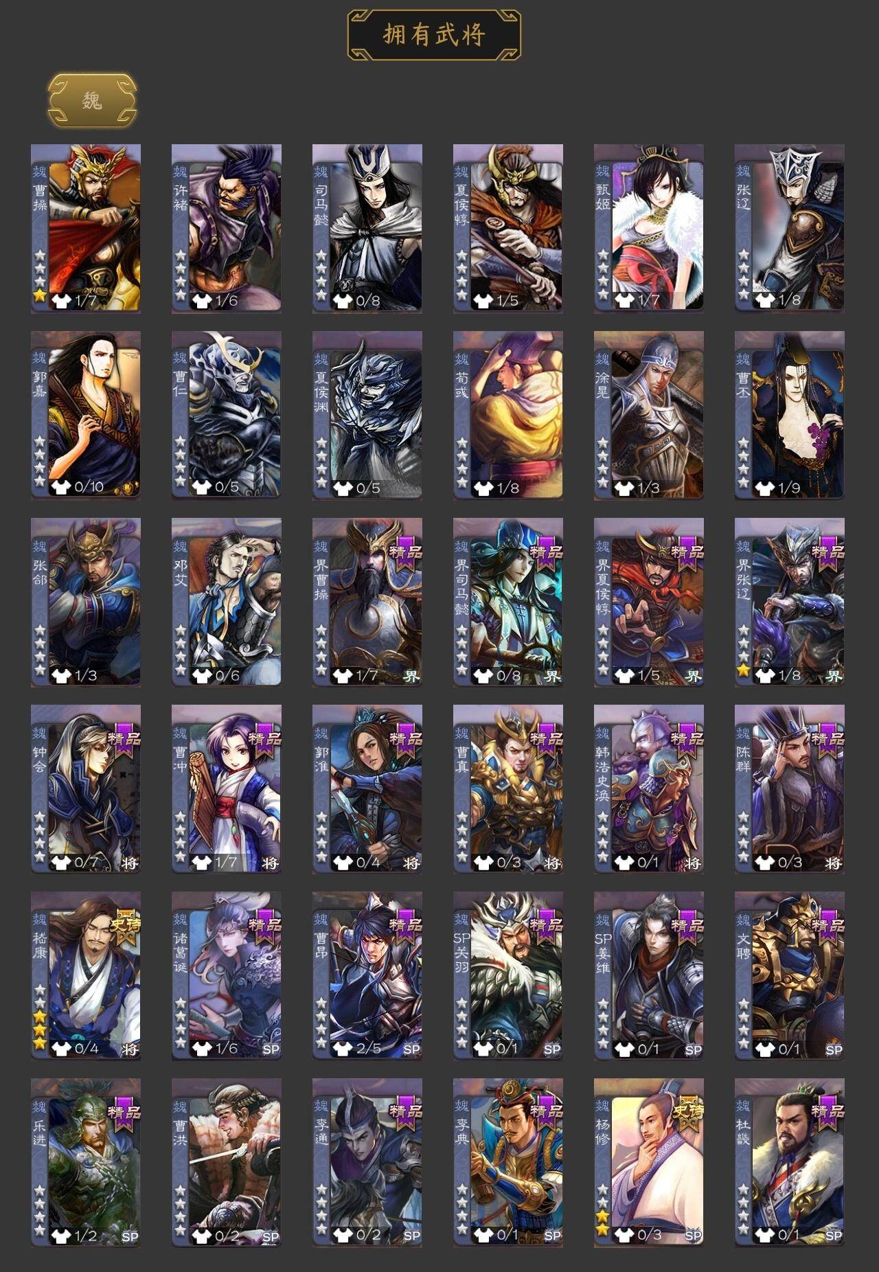 杨修,嵇康,傅佥,神周瑜,SP关羽,乐进,曹昂,诸葛诞,文聘,SP姜维,钟会,曹冲,郭淮,界曹操,界司马懿,界夏侯惇,界张辽,李典,曹真,韩浩史涣,陈群,李通,杜畿,夏侯霸,马良,关兴张苞