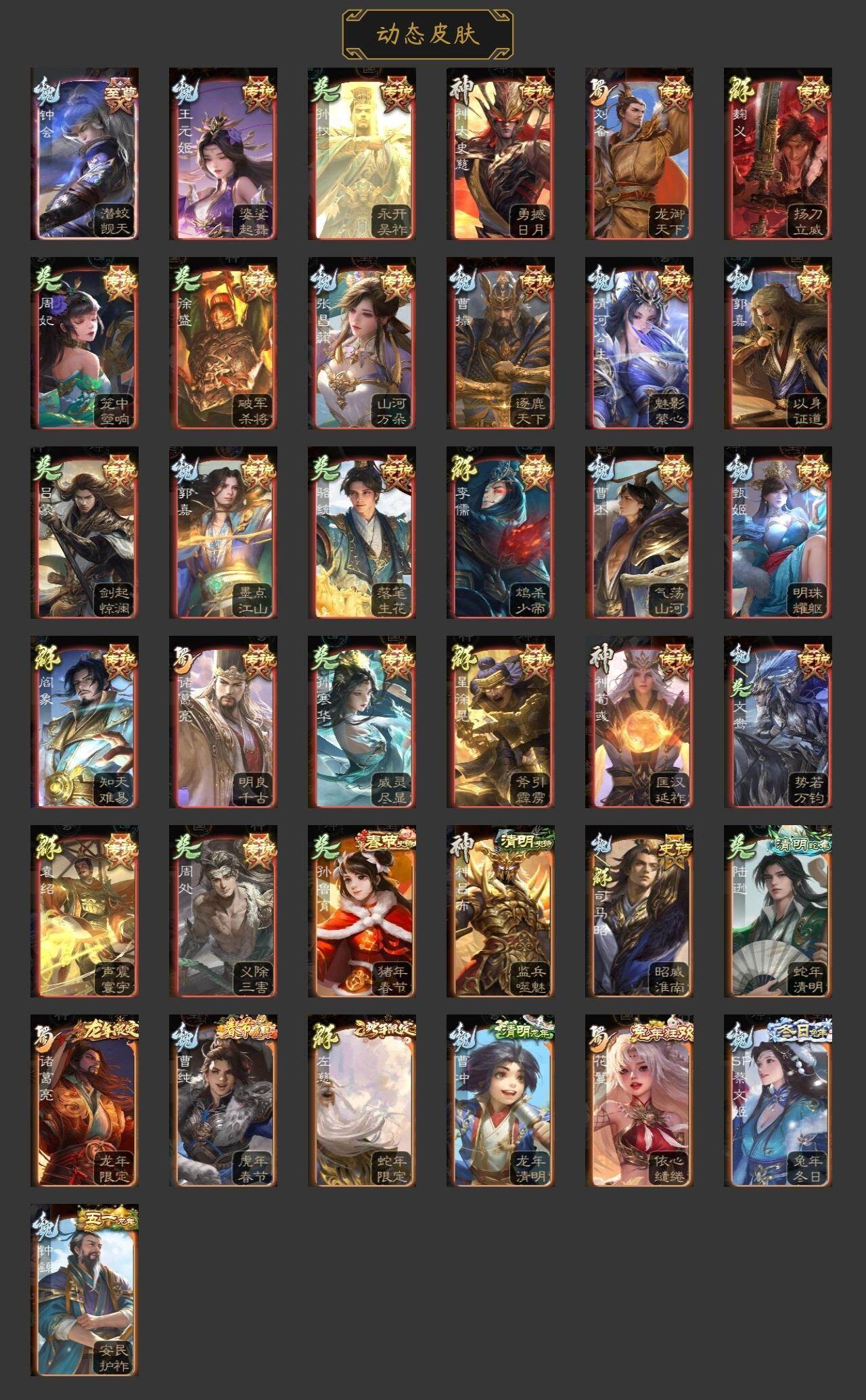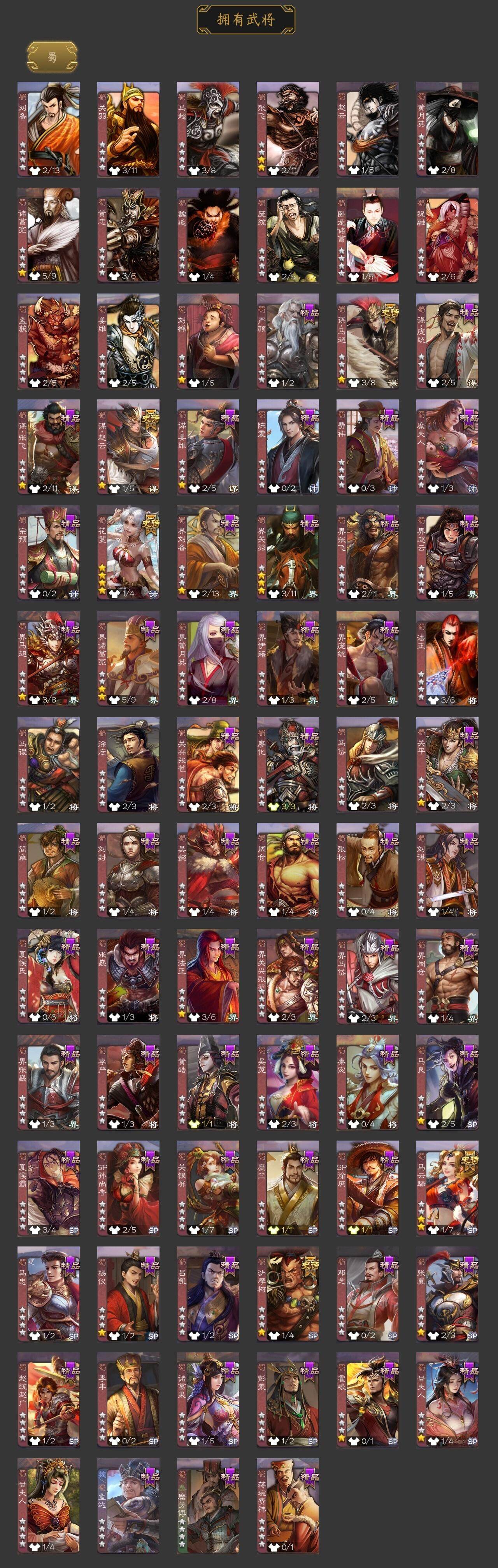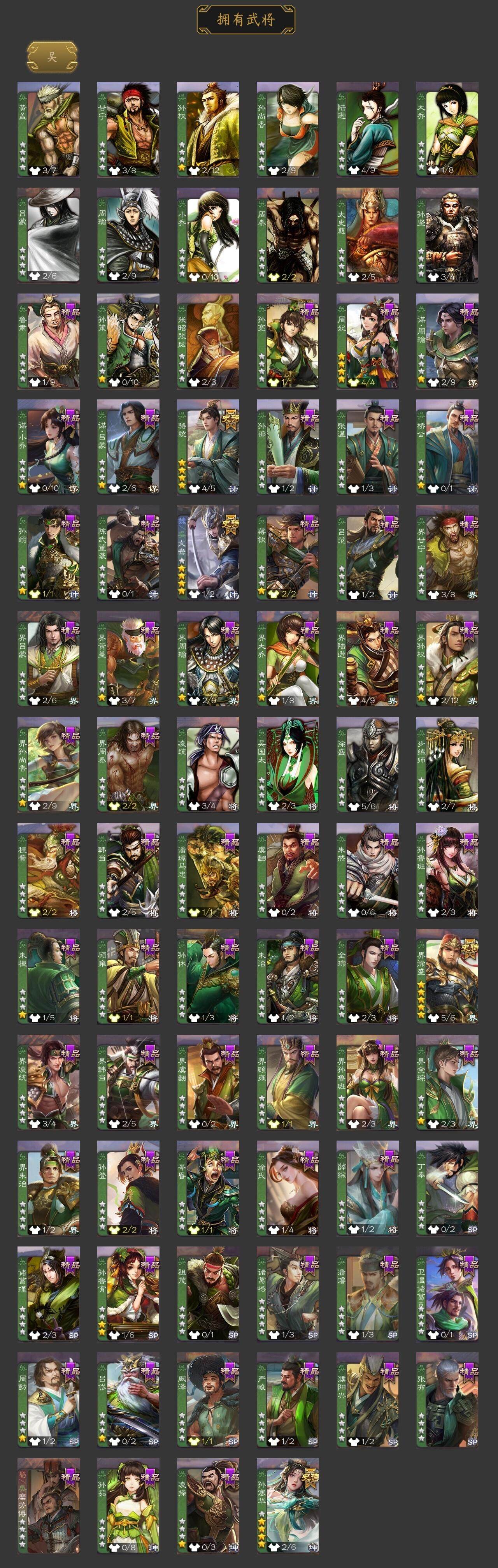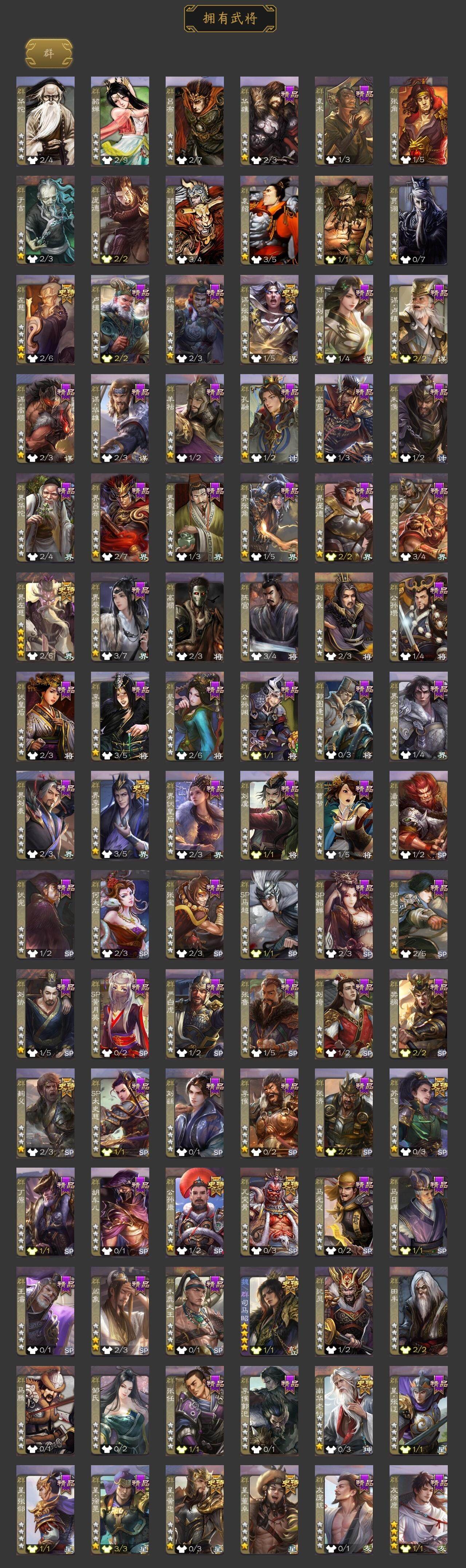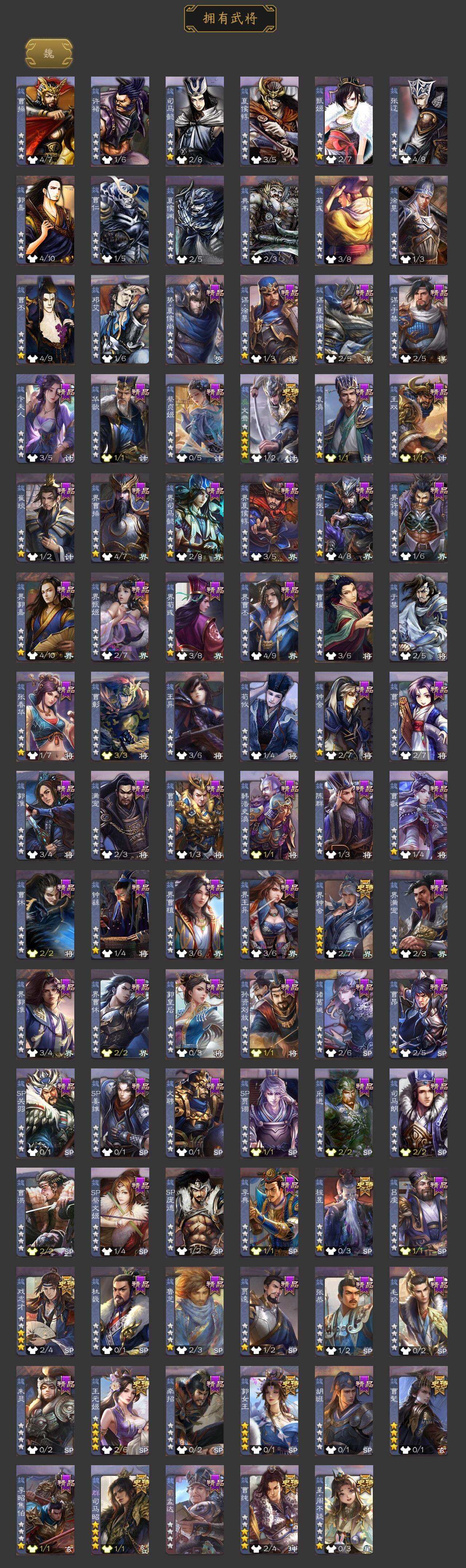 神吕布,神赵云,神张辽,神荀彧,神诸葛亮,曹髦,郭女王,星周不疑,王元姬,界钟会,曹纯,戏志才,程昱,马云騄,谋赵云,谋马超,沙摩柯,花鬘,孙寒华,骆统,界徐盛,文鸯,左慈,星黄忠