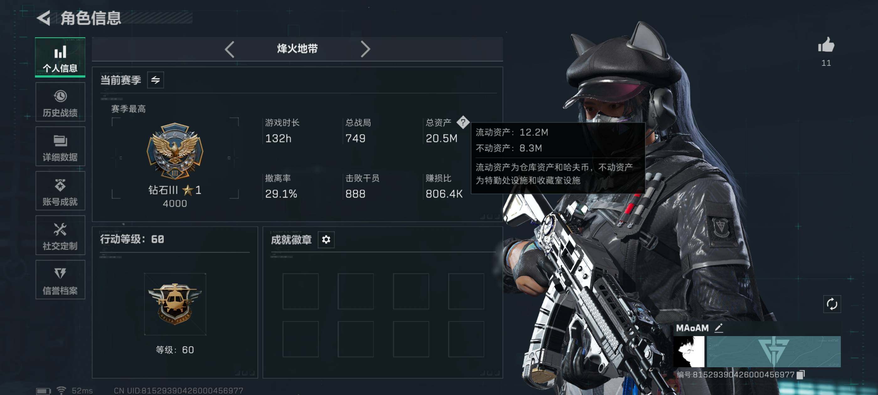 LJ4830总资产20.5M哈弗币286K近战武器-黑鹰露娜黑天际线无无AW子弹20发三角币595仓库LV.5进阶安全箱靶场LV.4训练中心LV.6无,露娜-黑·天际线,近战-黑鹰