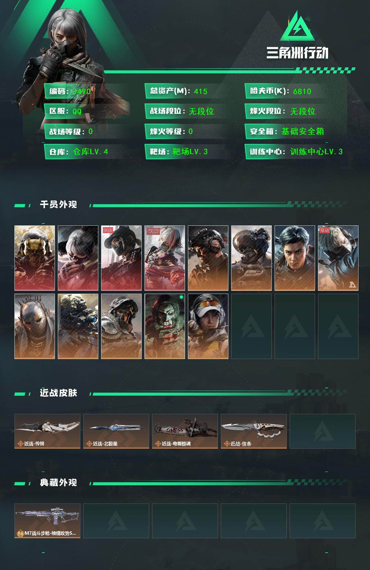 LJ4834总资产415.1M哈弗币6810K近战武器-北极星,近战武器-怜悯,近战武器-信条,近战武器-电锯惊魂红狼蚀金玫瑰,威龙飞虎,威龙铁面判官,露娜黑天际线,骇爪水墨云图,骇爪维什戴尔,红狼电锯惊魂,威龙壮志凌云,无名夜鹰,蜂医送葬人无题密令,牧羊人街头之王,深蓝不破誓约,露娜金牌射手M7战斗步枪-棱镜攻势S2(优品C)无AW子弹125发三角币206仓库LV.10基础安全箱靶场LV.7训
