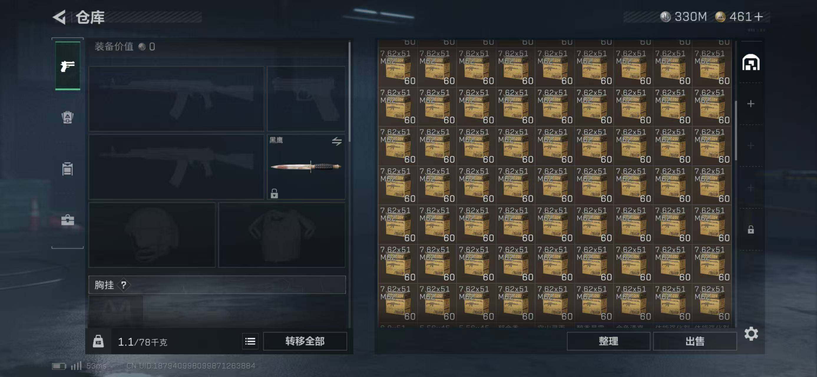 LJ4854总资产381M哈弗币330000K近战武器-黑鹰无无无AW子弹0发三角币461仓库LV.4基础安全箱靶场LV.4训练中心LV.6无,蜂医-送葬人·无题密令,近战-黑鹰