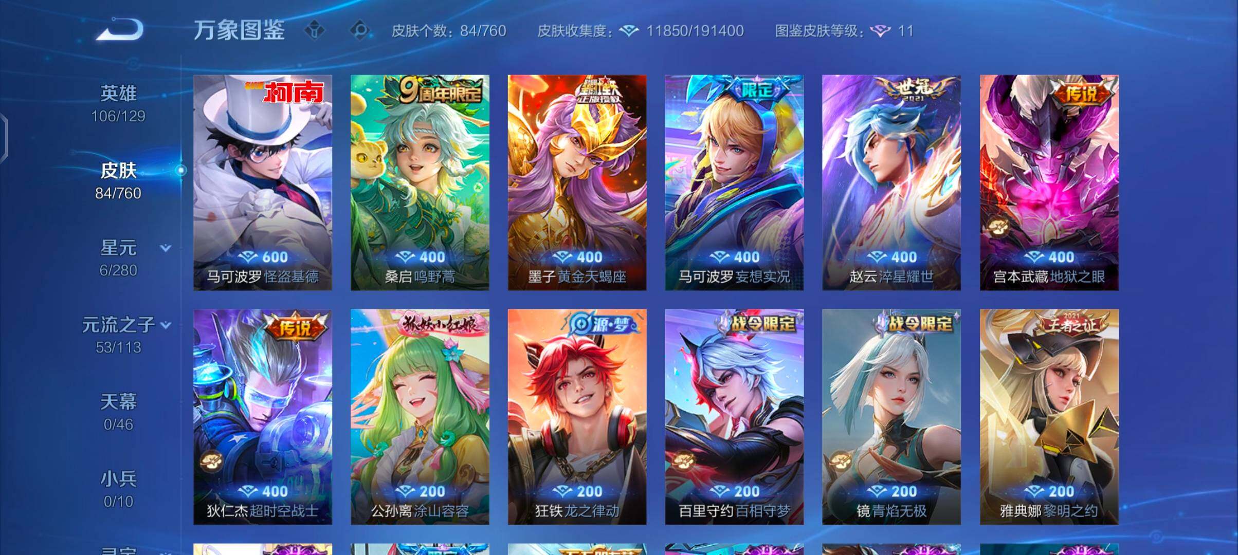 【传说皮肤】:桑启鸣野蒿,墨子黄金天蝎座,马可波罗妄想实况,赵云