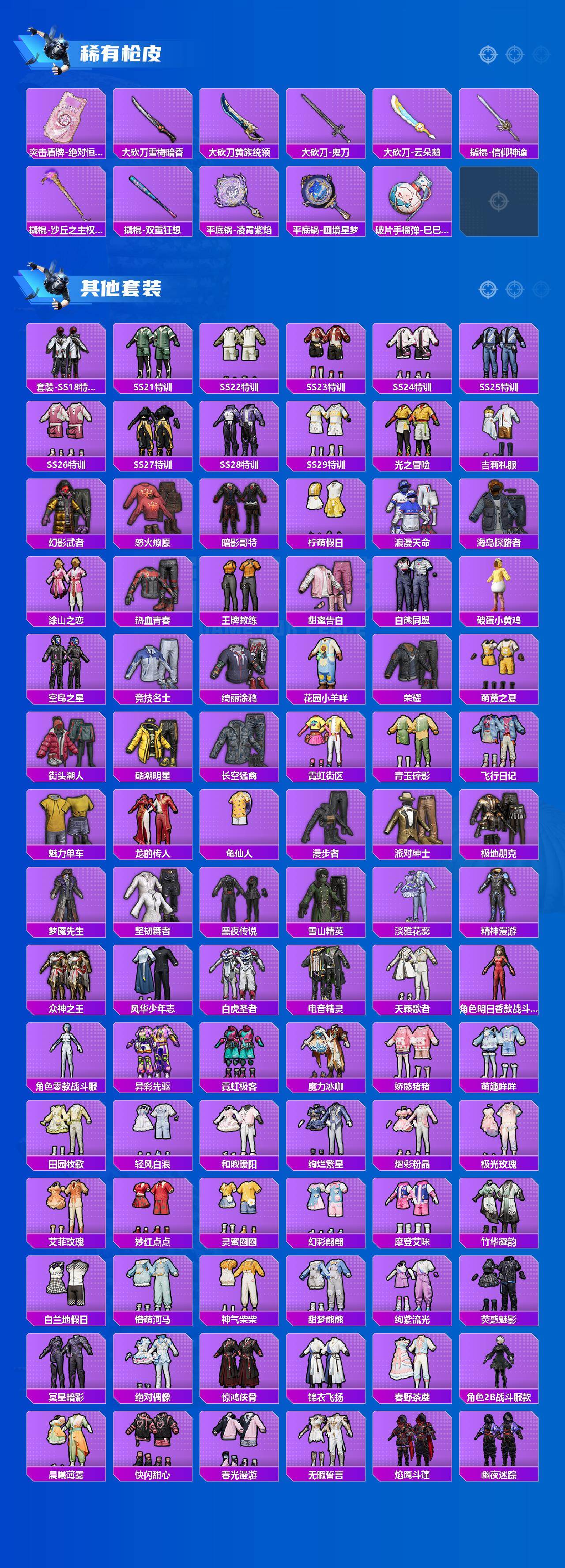 【热门品类】:粉装-音爆索尼克,套装-浪漫天命,角色-军刀雅典娜,套装-胖达圆圆,角色-2B战斗服款,套装-龟仙人,套装-暗影哥特【粉色套装】:角色-绝对恒星,粉装-蝶舞迷情,粉装-绚金战神,角色-洛天依,粉装-吟月归客,角色-2号机款机体服,粉装-冰川