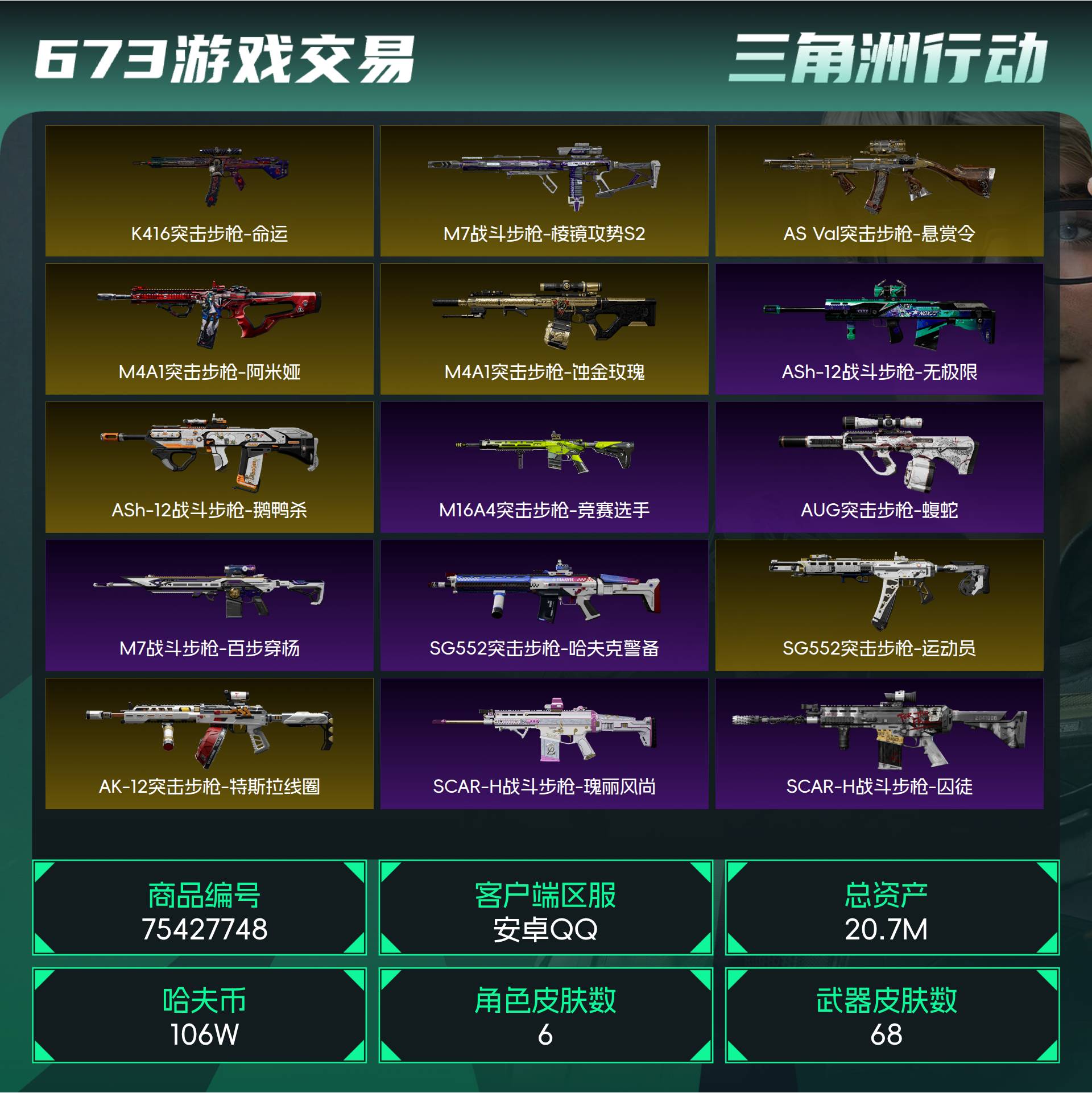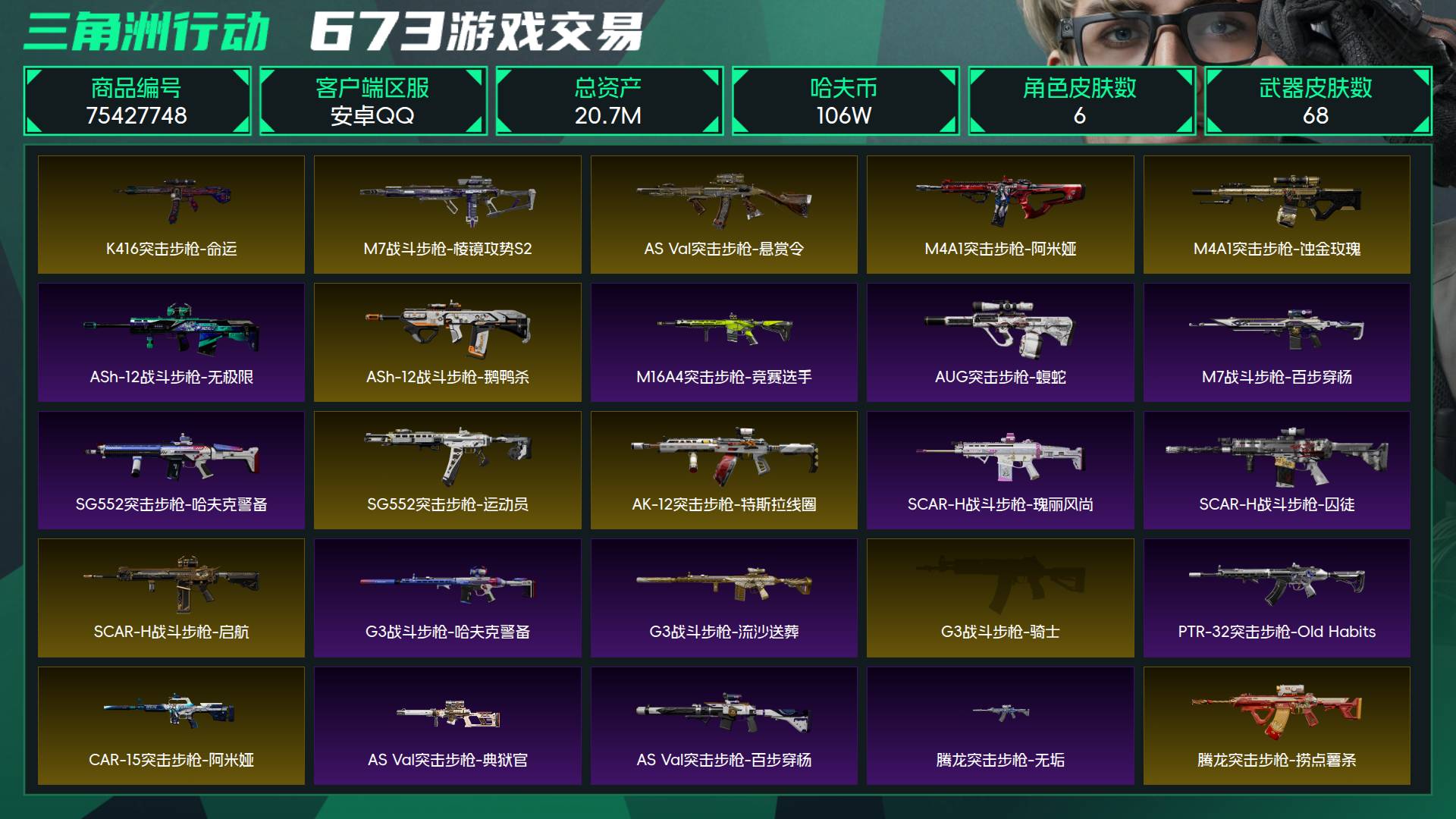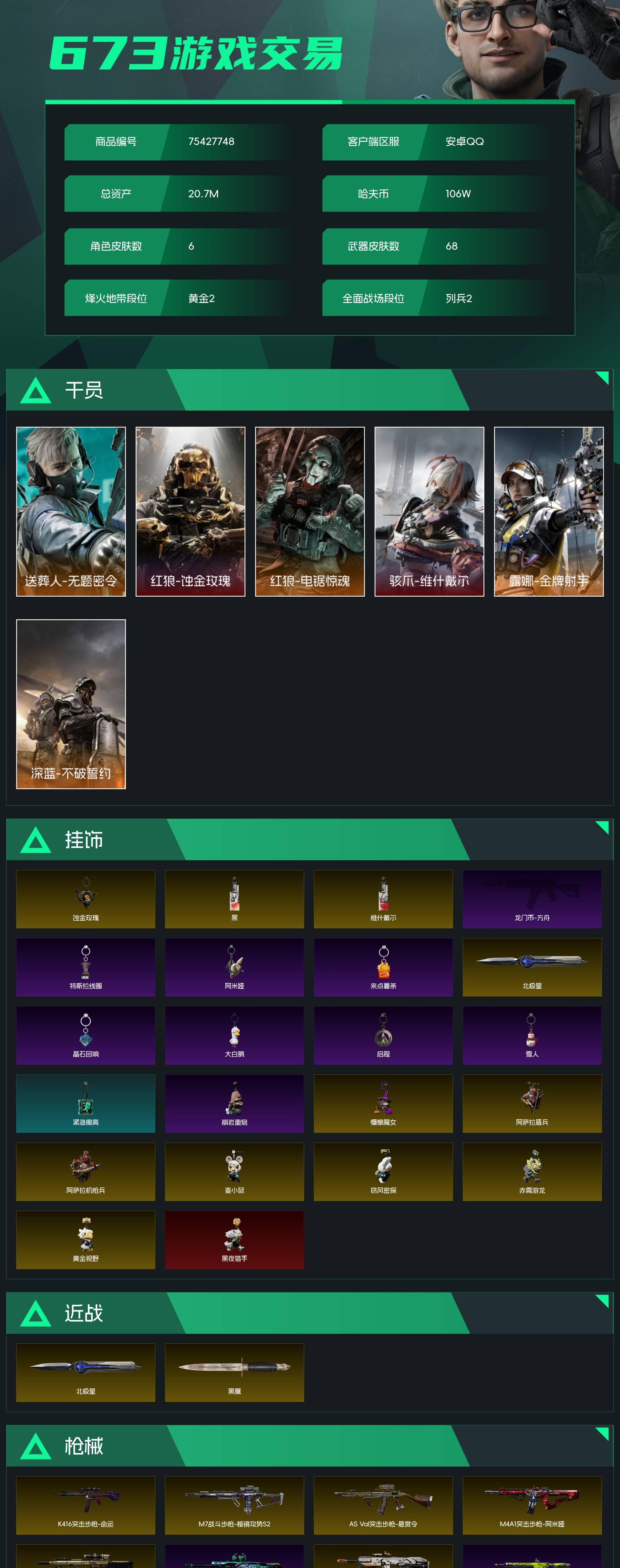 烽火段位黄金2 战场段位列兵2 总资产20.7M 哈夫币106W 干员6 挂饰22 近战2 枪械68 载具11