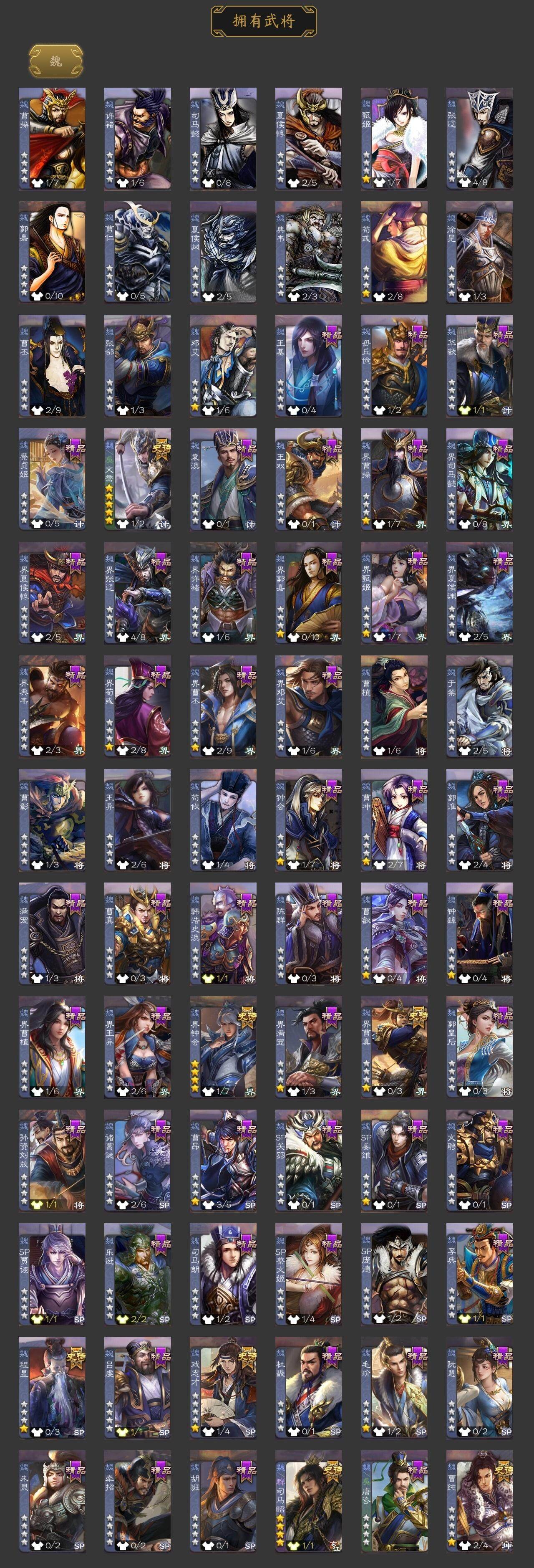 神吕布,界钟会,界曹真,曹纯,戏志才,程昱,谋马超,王平,沙摩柯,谯周,花鬘,董允,周处,文鸯,左慈,麹义,沮授,界李儒,卑弥呼,谋张角,星董卓,兀突骨,司马昭,SP