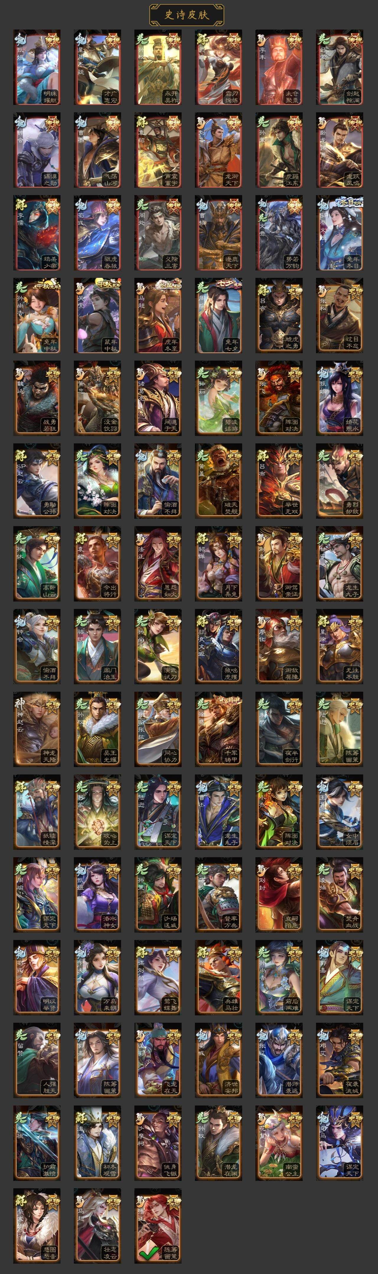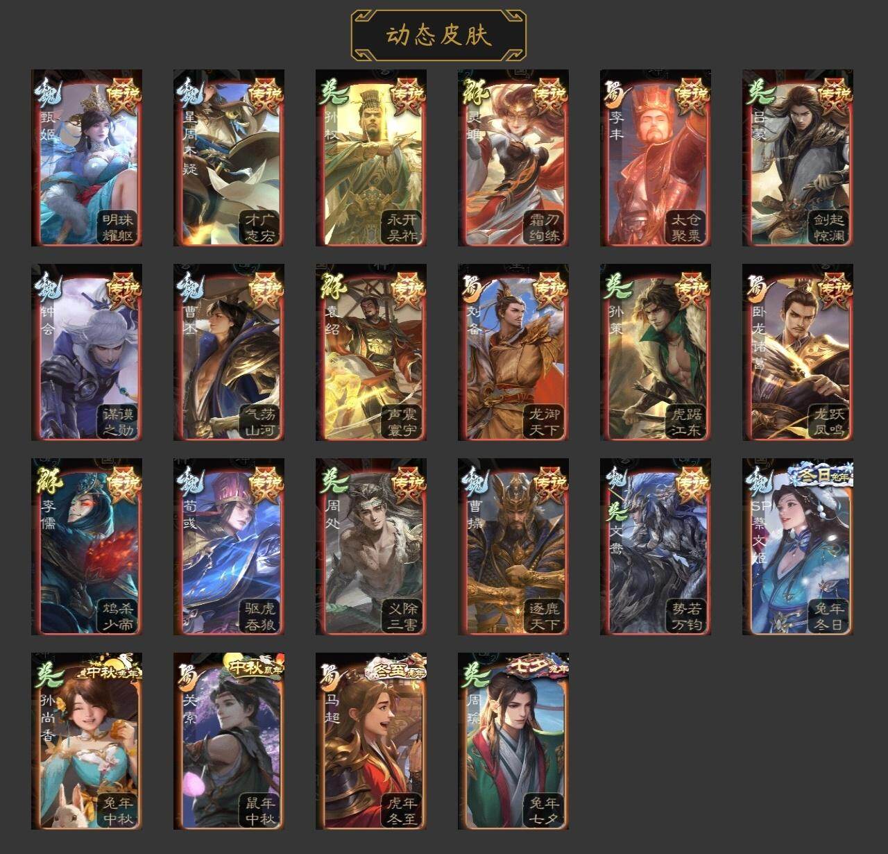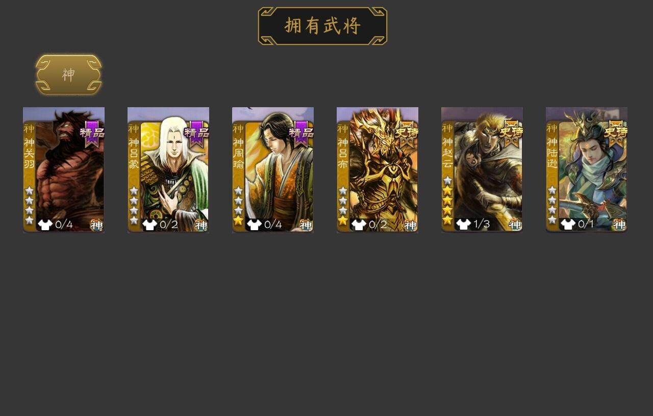 神吕布,神赵云,神陆逊,星周不疑,曹纯,程昱,谋夏侯氏,谋赵云,谋马超,花鬘,张奋,周处,骆统,文鸯,谋孙尚香,左慈,麹义,沮授,界李儒,许攸,兀突骨,神吕蒙,神周瑜,