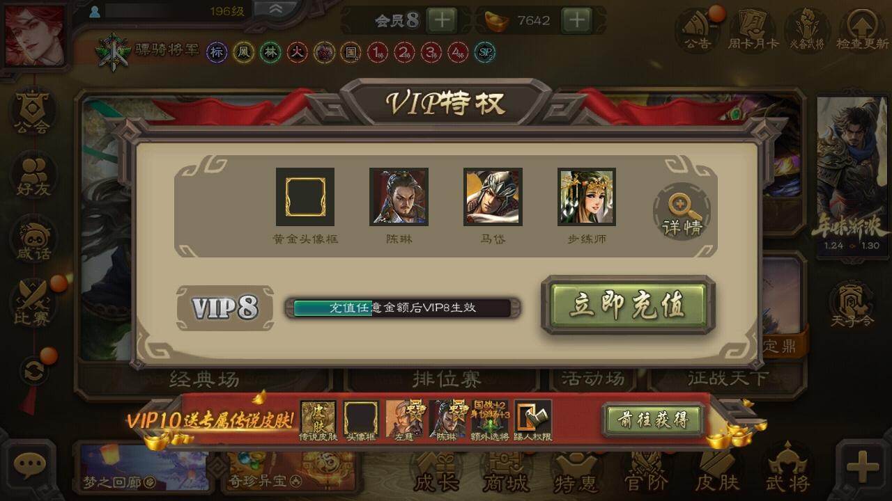 【1287】官阶:骠骑将军;VIP等级:VIP8;史诗武将数量:21;动态皮肤