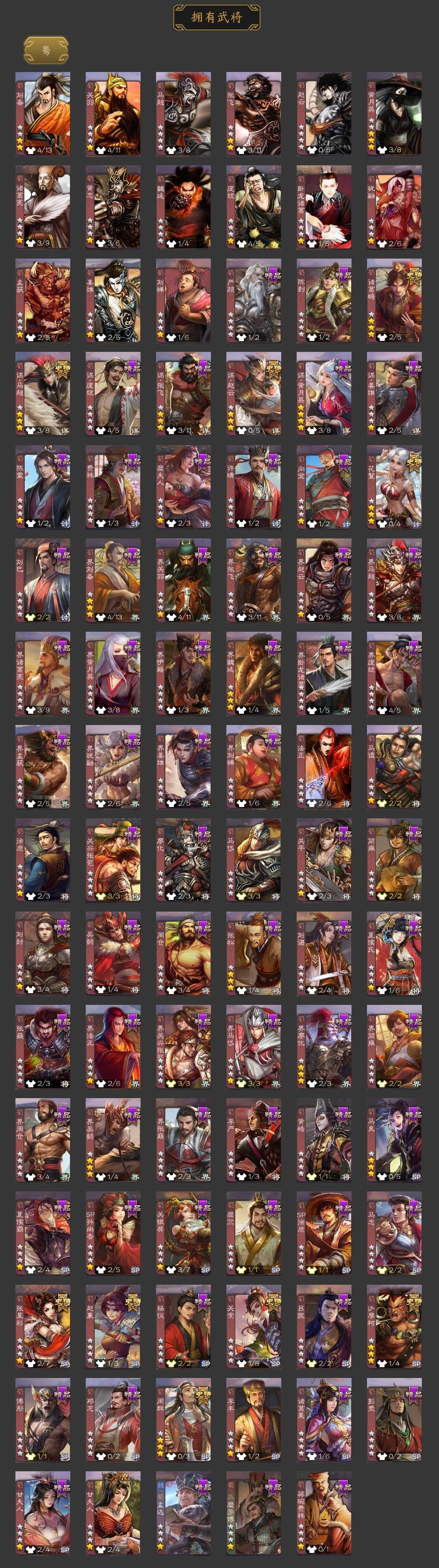 神吕布,神赵云,神张辽,曹髦,星周不疑,王粲,杨修,马钧,界钟会,界于禁,界曹真,嵇康,陈琳,曹婴,曹纯,戏志才,清河公主,程昱,关索,谋赵云,谋马超,诸葛瞻,周群,赵襄