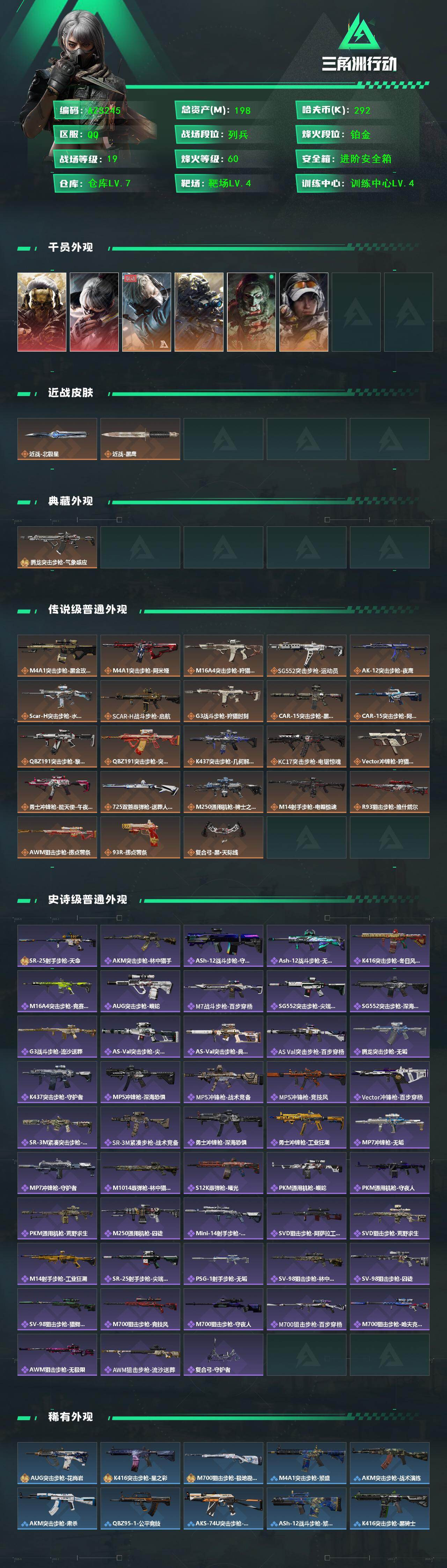 【AZS245】198m总资产-292k哈伏币-60烽火等级-铂金-19战场等级-列兵