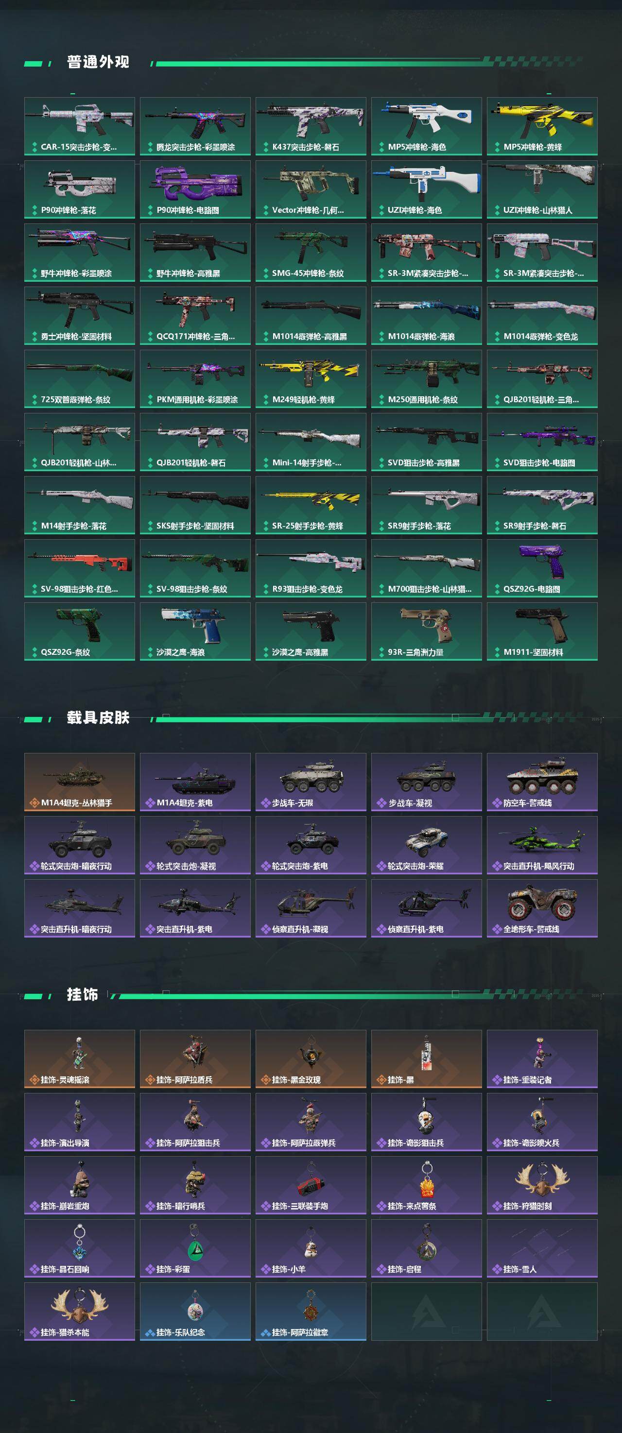 【传说外观】:M4A1突击步枪-蚀金玫瑰,M4A1突击步枪-阿米娅,M16A4突击步枪-狩猎时刻,SG552突击步枪-