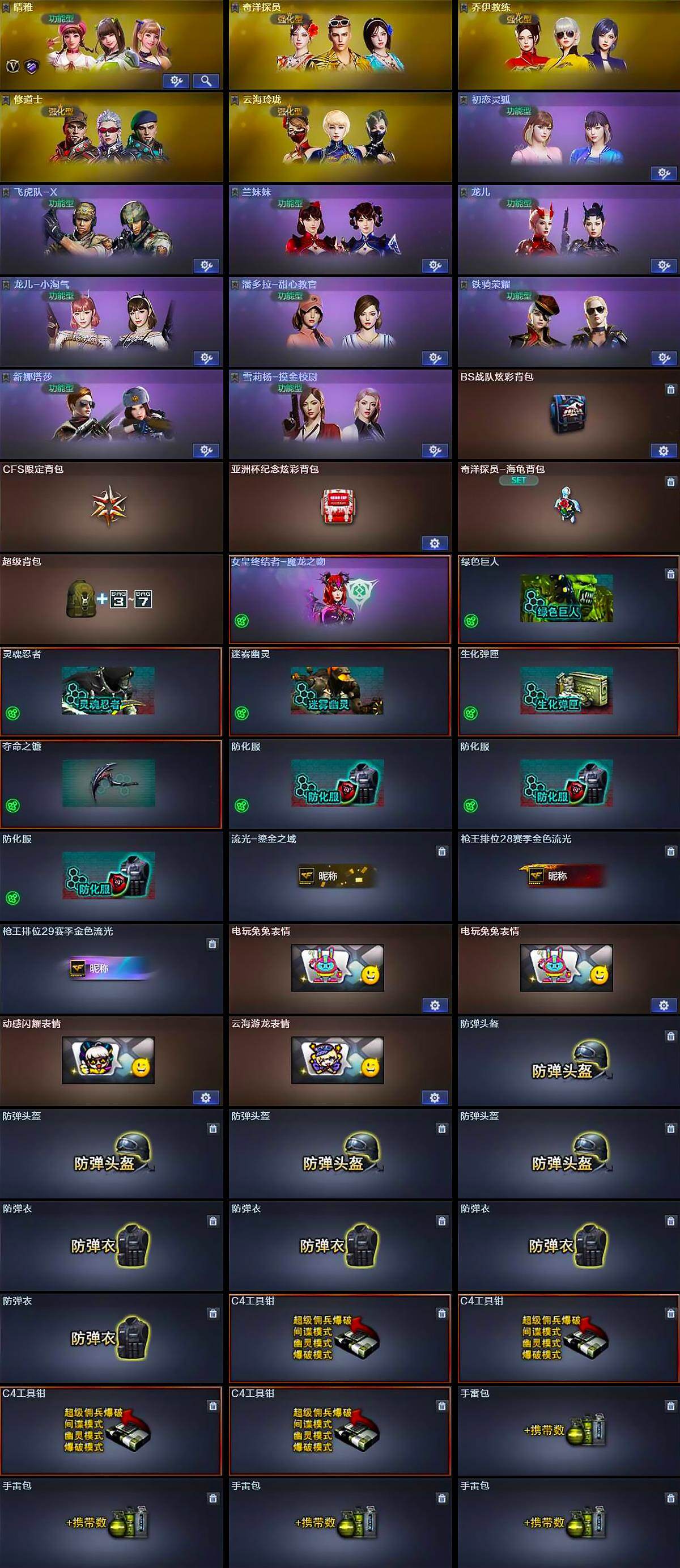 【角色】:晴雅,奇洋探员,乔伊教练,修道士,云海玲珑,初恋灵狐,飞虎队-X,兰妹妹,龙儿,龙儿-小淘气,潘多拉-甜心教官,铁骑荣耀,新娜塔莎,雪莉杨-摸金校尉