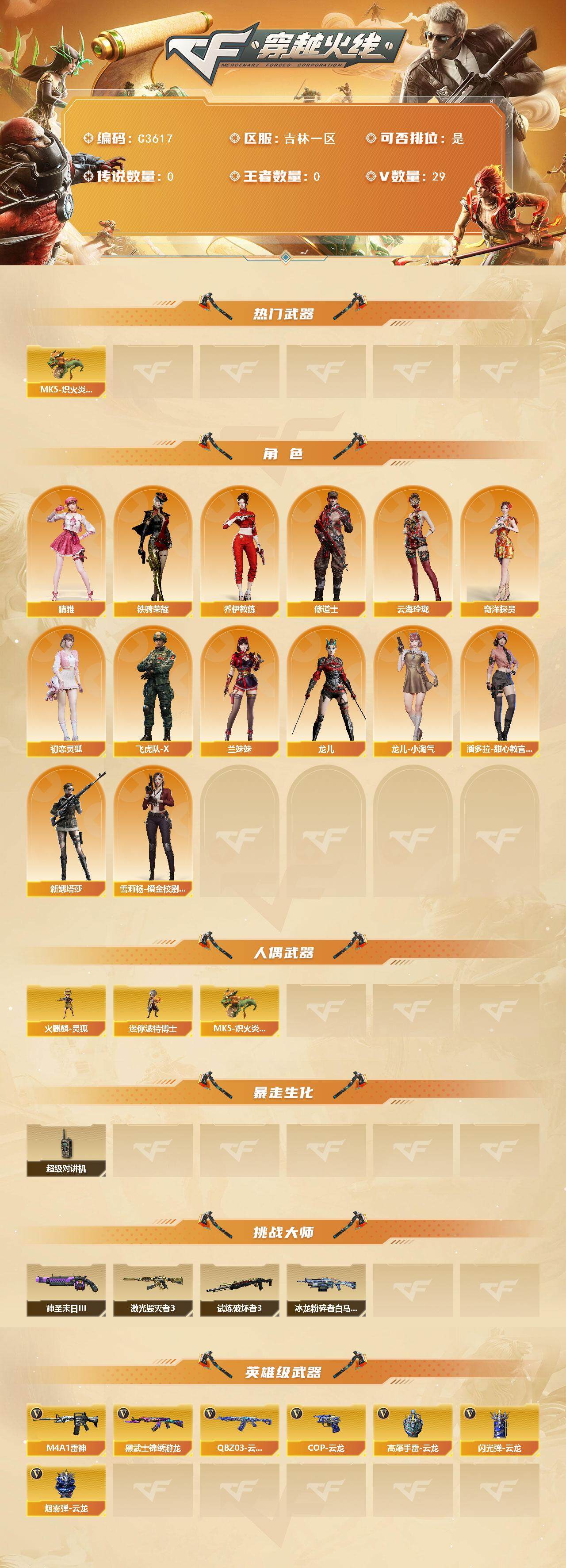 【C3617】吉林一区-29V-0王者-0炫金