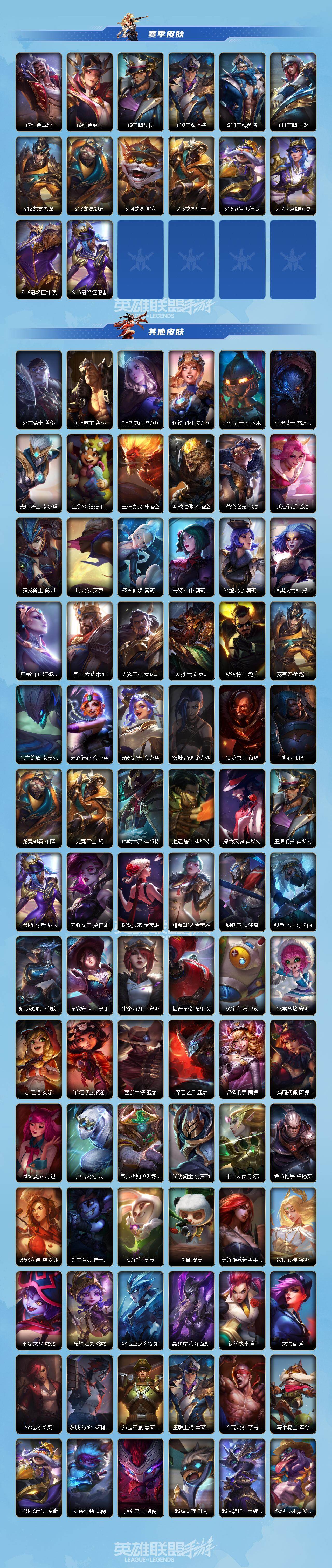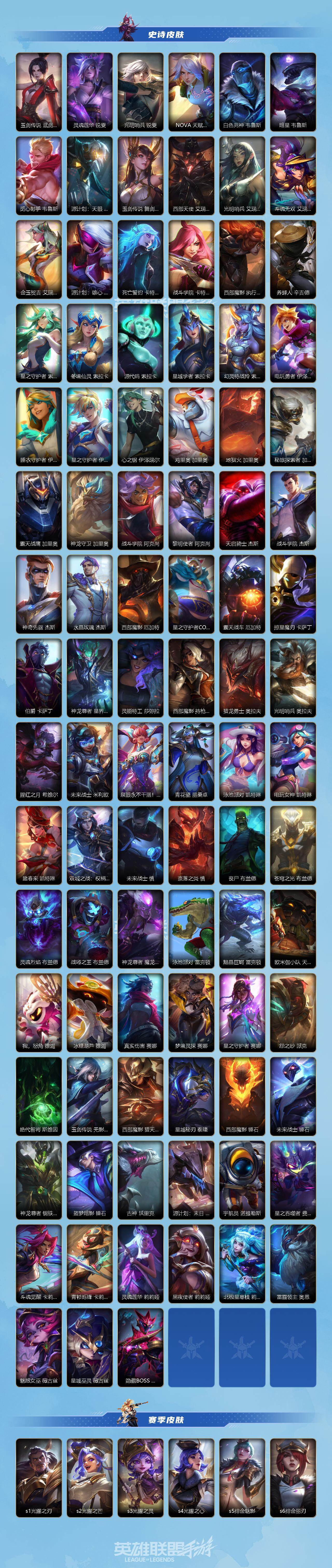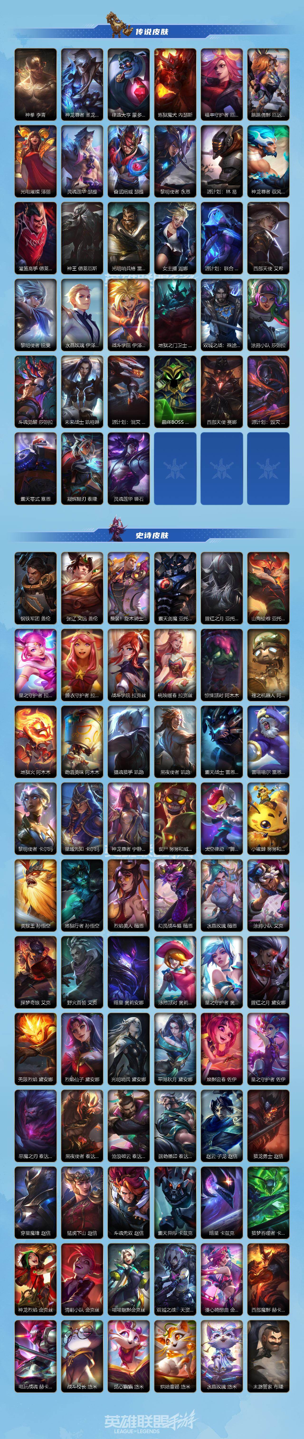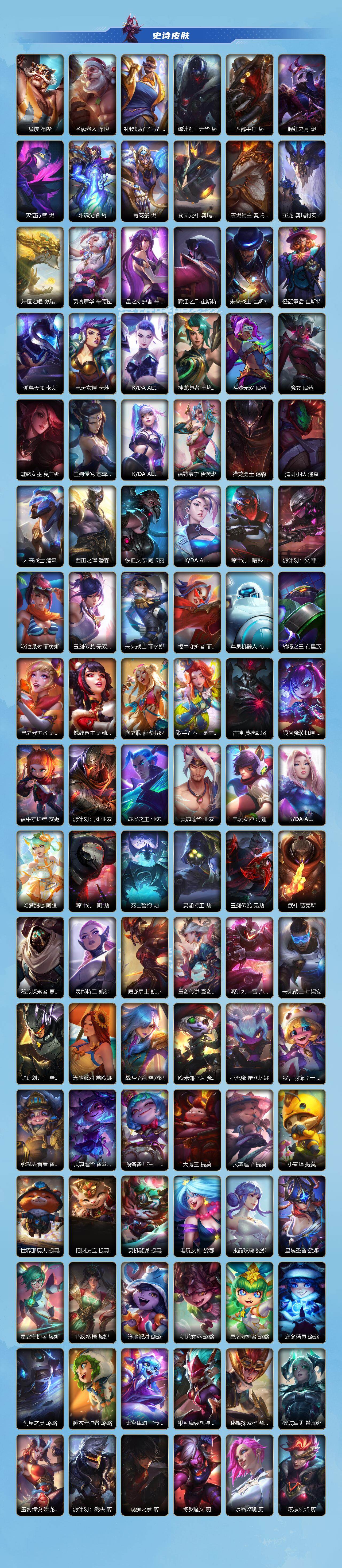 134英雄/610皮肤/3典藏/14神话/76传说/364史诗/流光翡翠/