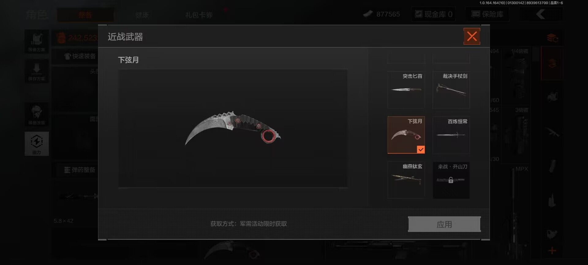 【AQD181】等级:30/段位:暗区传说/仓库价值(百万):3.7/柯恩币:877565/百炼恒常/幽燕钛玄/下弦月/突击匕首/裁决手杖剑/脉冲马克西姆/绅士西服/白蔷薇斯黛拉/地脉深处FAL/秩序F2000/战术大师AEK/玉擎天工AN94/玉擎天工MP5/骑士之剑VSS/骑士之剑AX50/近卫荣誉RPK16/清影/骑士典范艾尔熙德