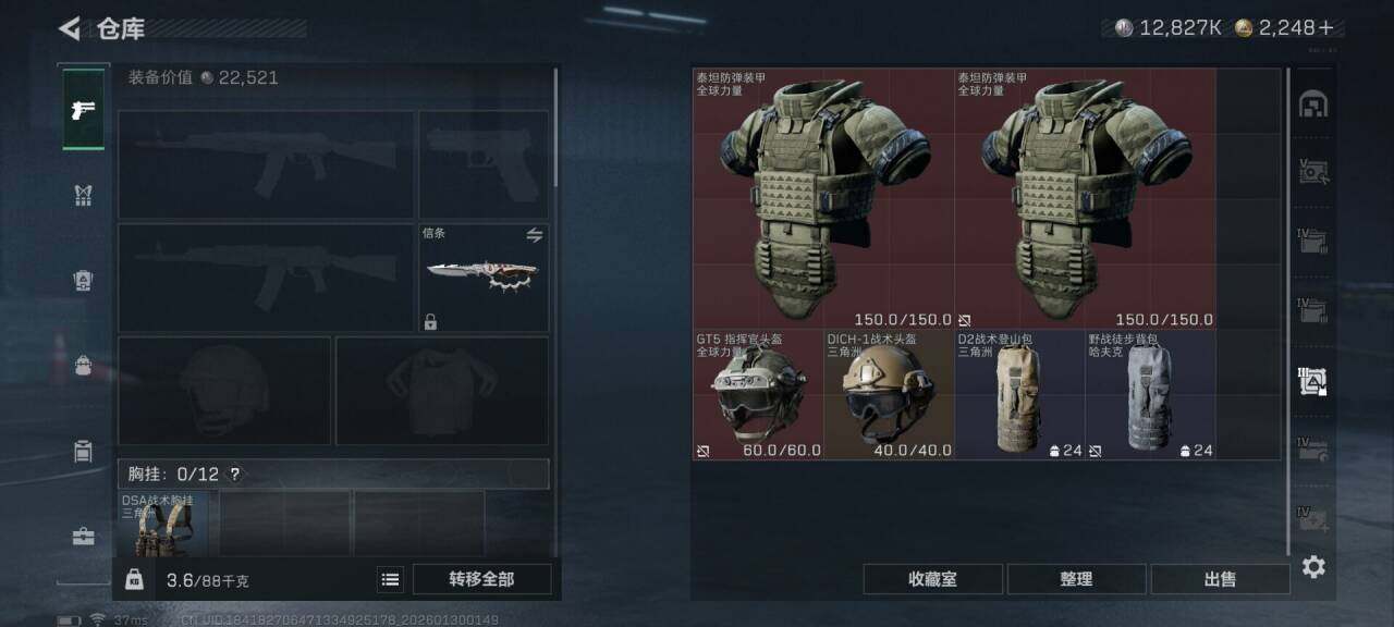 总资产(M):237M/哈夫币(K):12827K/传说枪皮数:12/全面战场等级:23_段位:上等兵/烽火地带等级:60_段位:青铜
