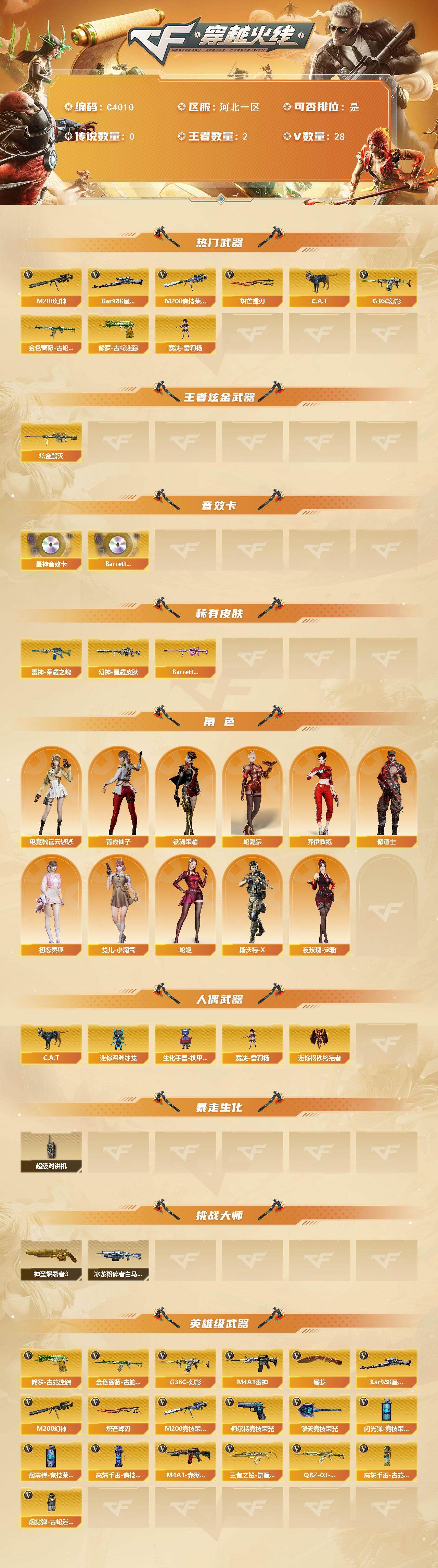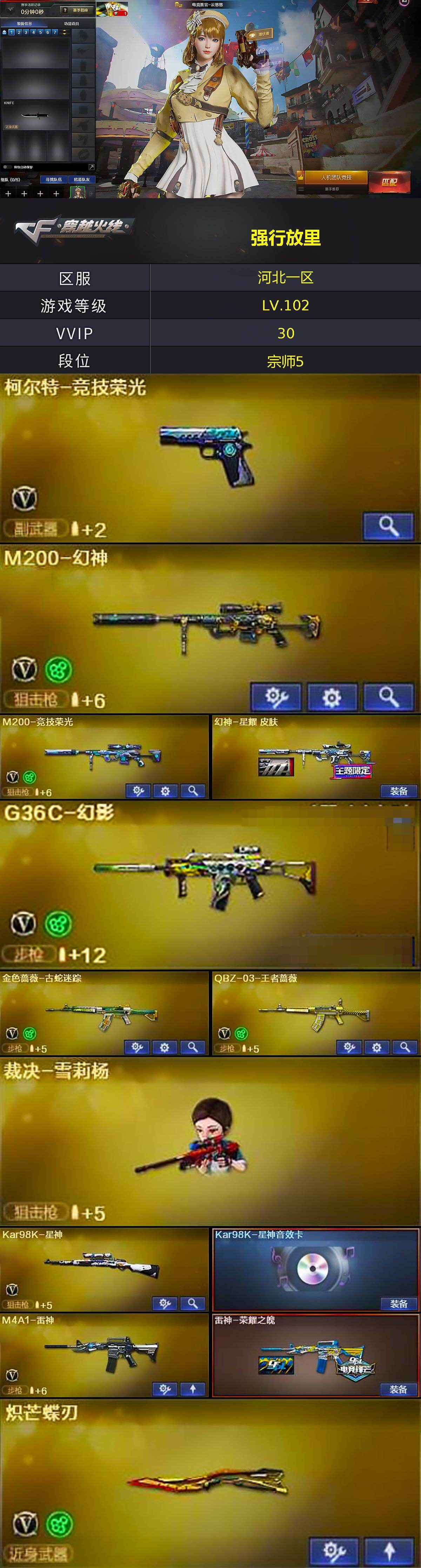 河北一区-28V-2王者-1炫金【热门武器】:G36C-幻影,M200-幻神