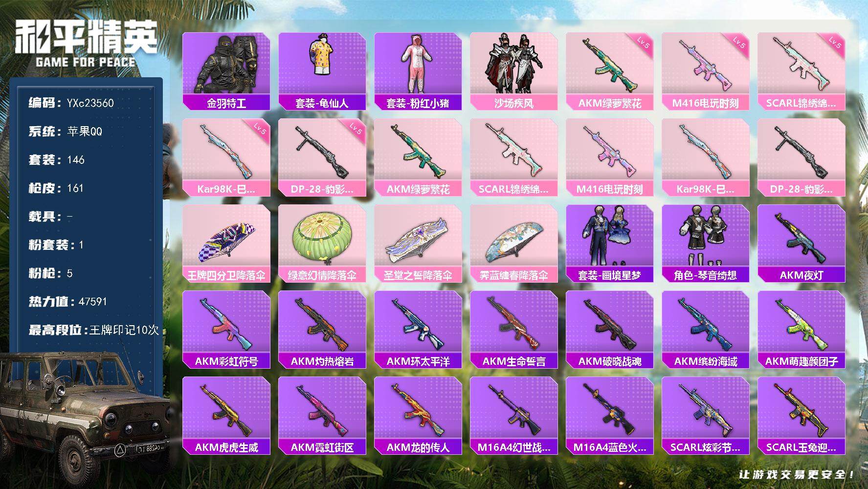 苹果Q-1稀有1粉装5特效枪11热门146套装161枪皮 10印记 历史超级王牌13星
